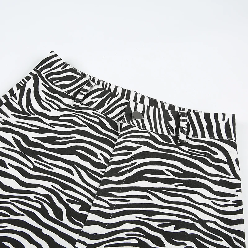 Женские прямые брюки Y2K с принтом зебры в стиле Харадзюку, повседн...