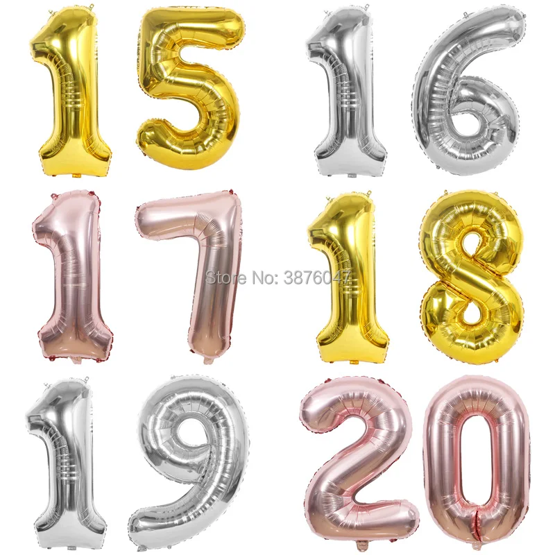 Воздушные шары, 40 дюймов, цифра 15, 16, 17, 18, 19, 20, розовое золото, серебро, 15, 16, 17, 18, 19, 20, украшения вечерние дня рождения