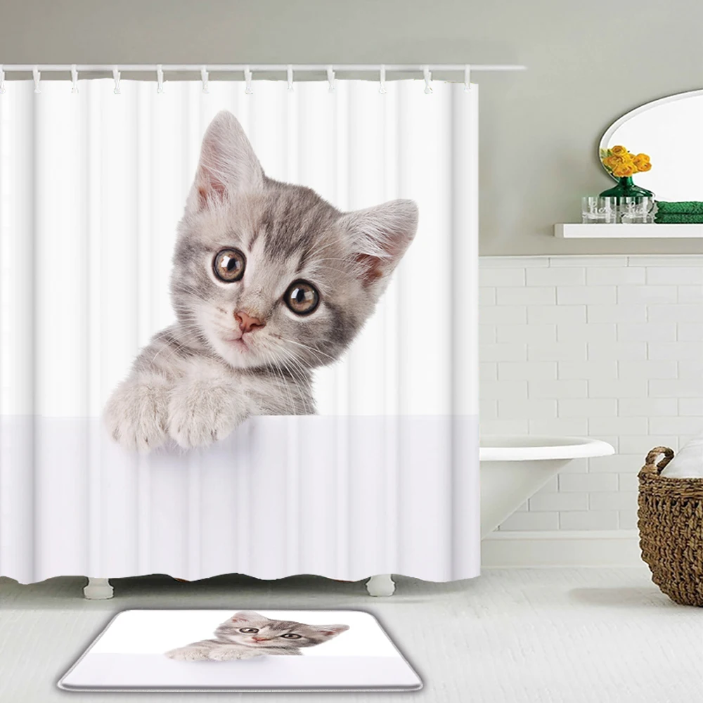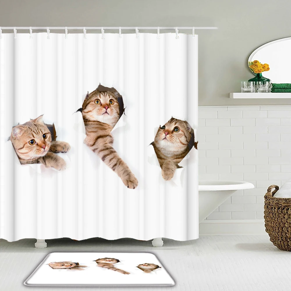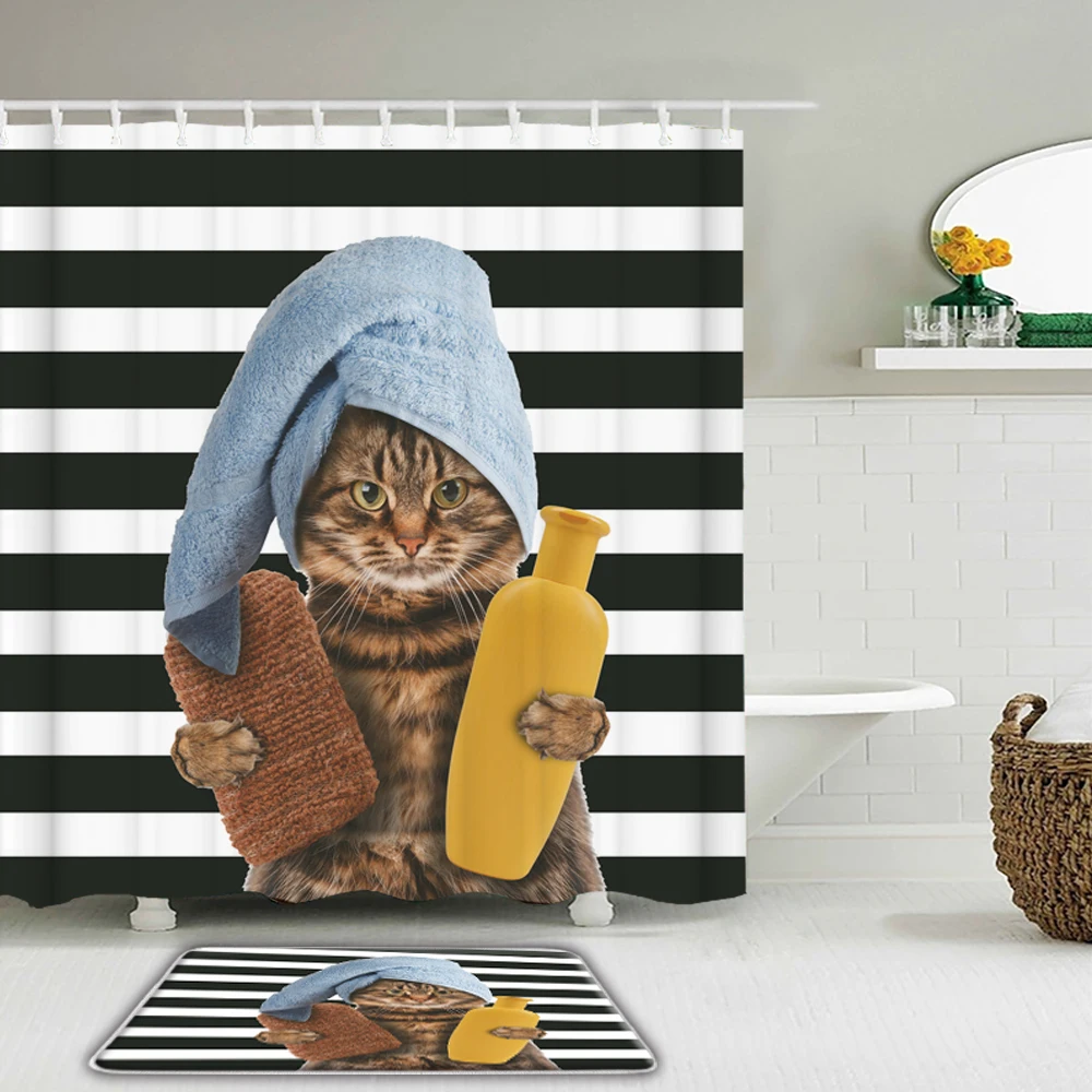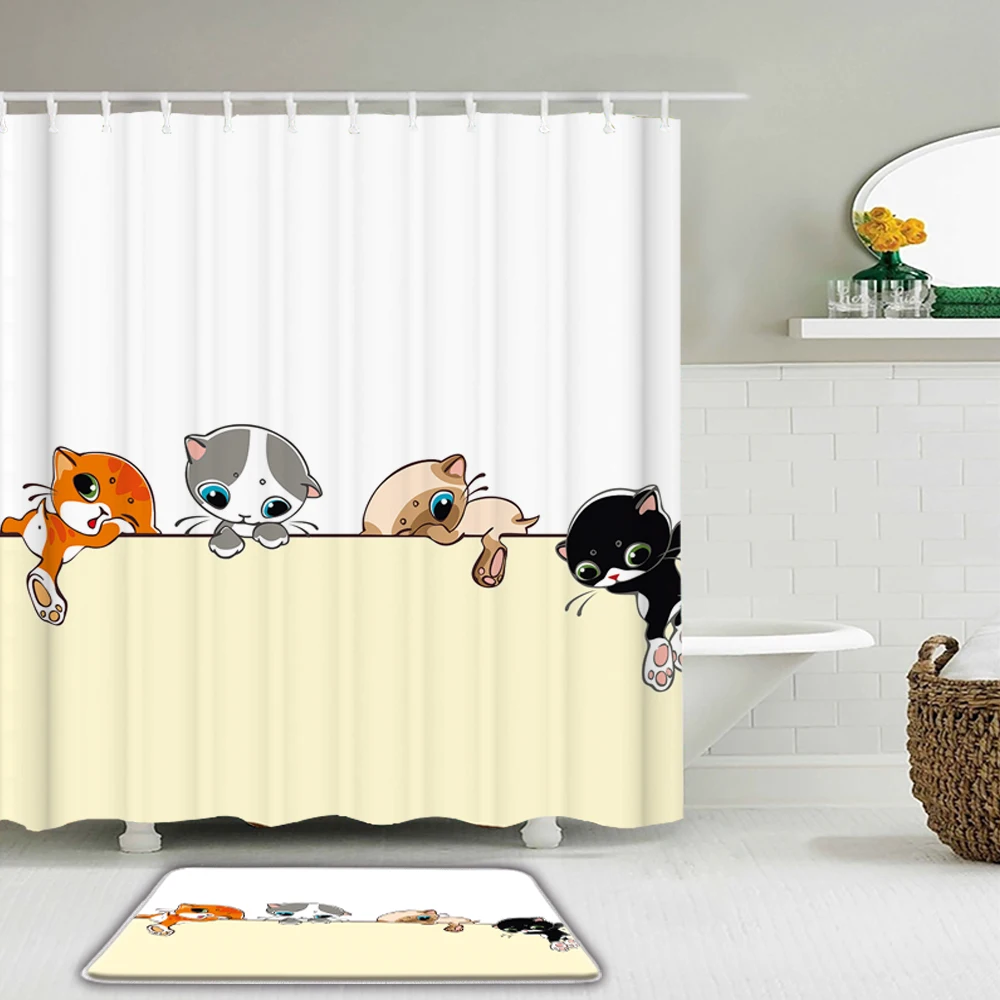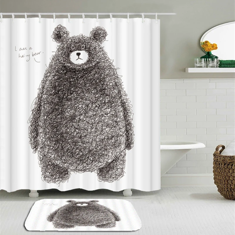 2 шт./компл., милые Мультяшные животные, занавески для душа, черный медведь, водонепроницаемые занавески для ванной, Европейский Американский стиль, Детские занавески для душа