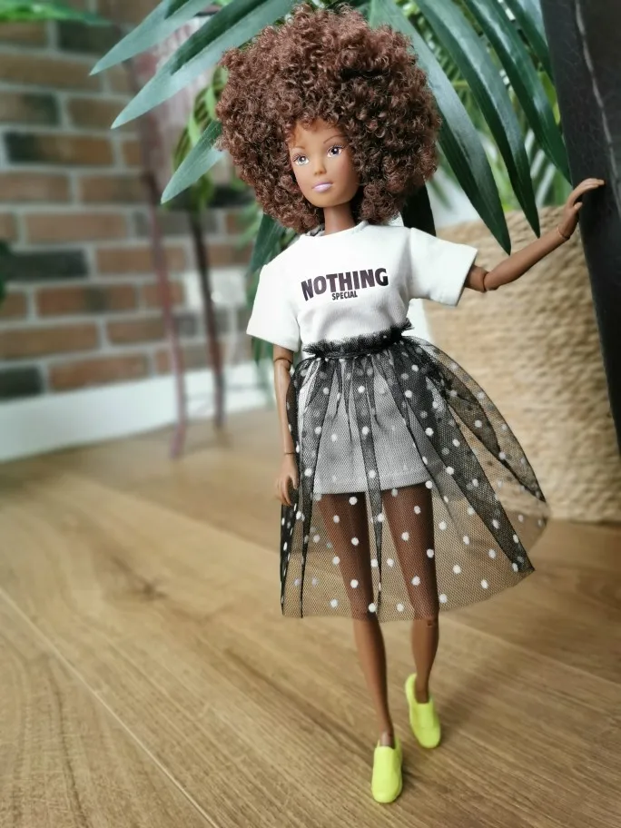 пухленькой барби футболка хорошо села, юбки на попу не хватает)