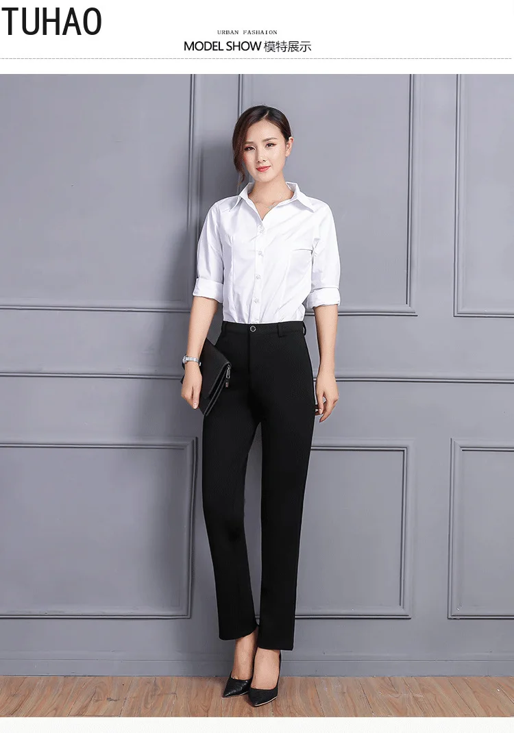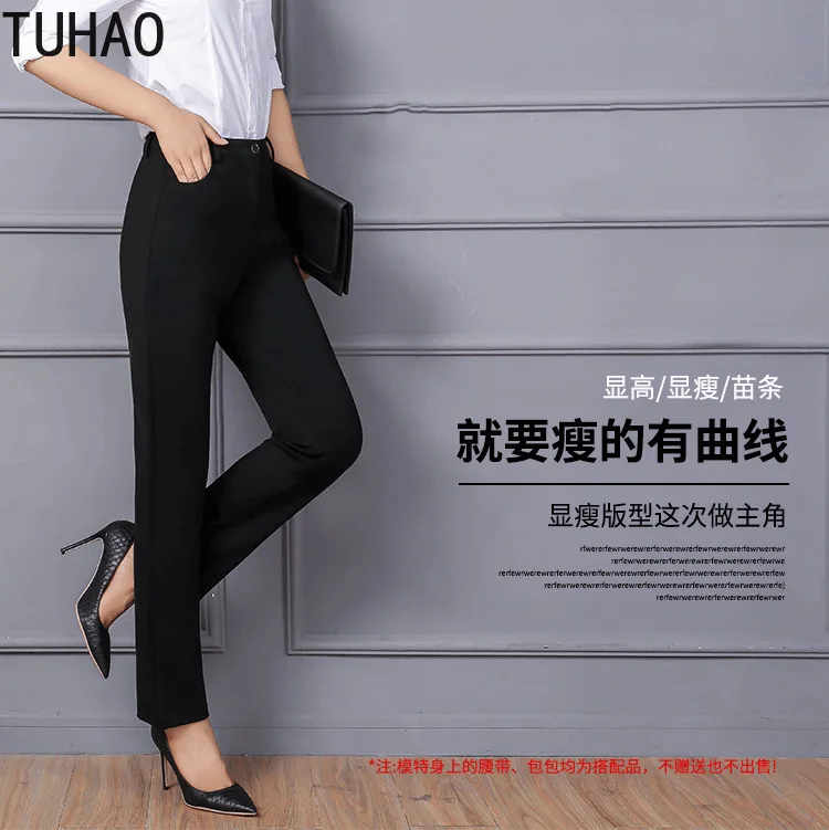 TUHAO женские брюки размера плюс 8XL 9XL, полосатые брюки для женщин с высокой талией, Офисная Рабочая одежда, деловые черные Костюмные брюки
