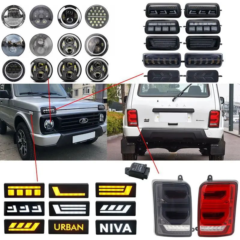 Для LADA NIVA 4X4 2121 городские фары Дневные хосветильник огни и боковые габаритные огни комплект задних светодиодных фар дымчатый