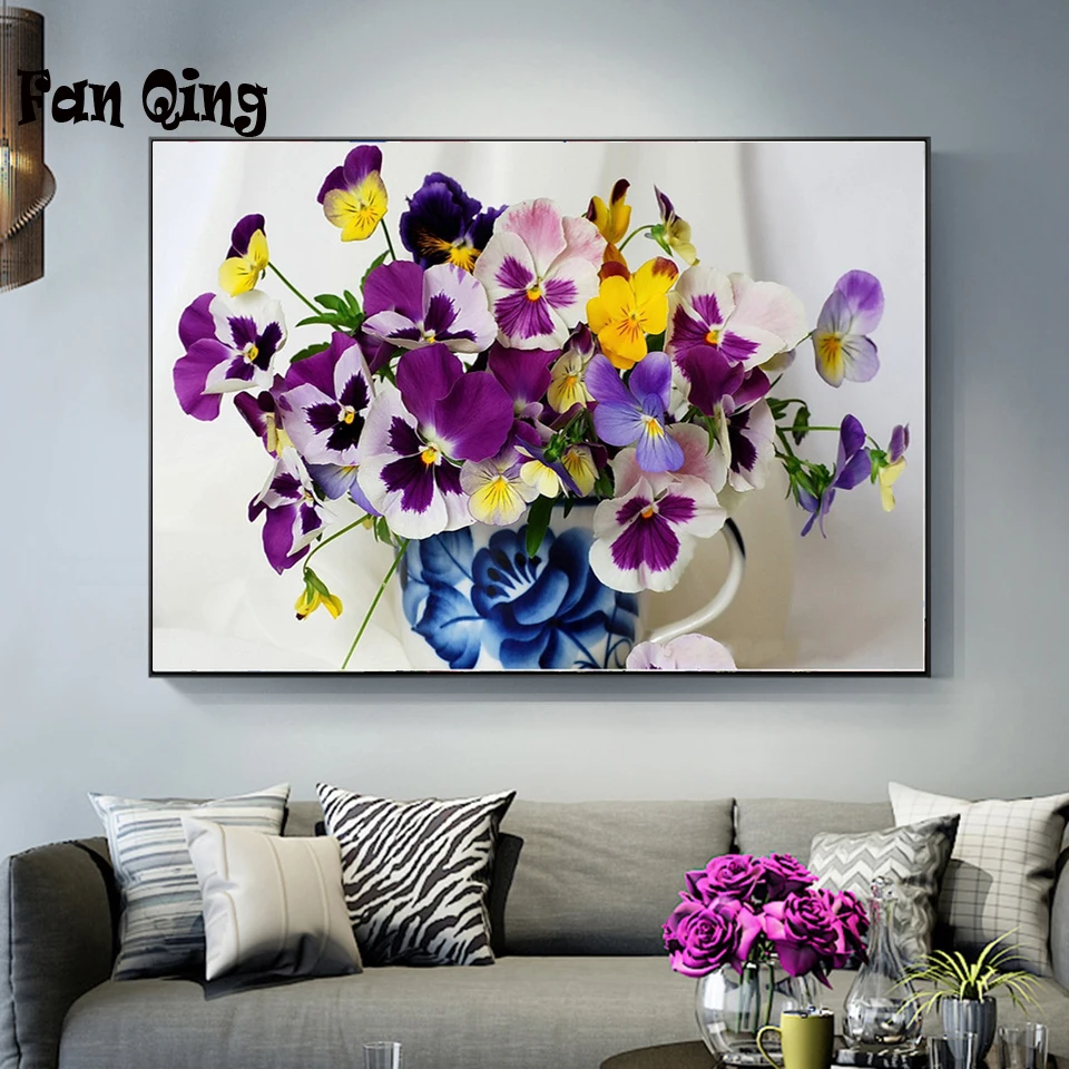 5D DIY алмазная живопись Pansy Алмазная мозаика Алмазная вышивка полная квадратная Стразы домашний декор