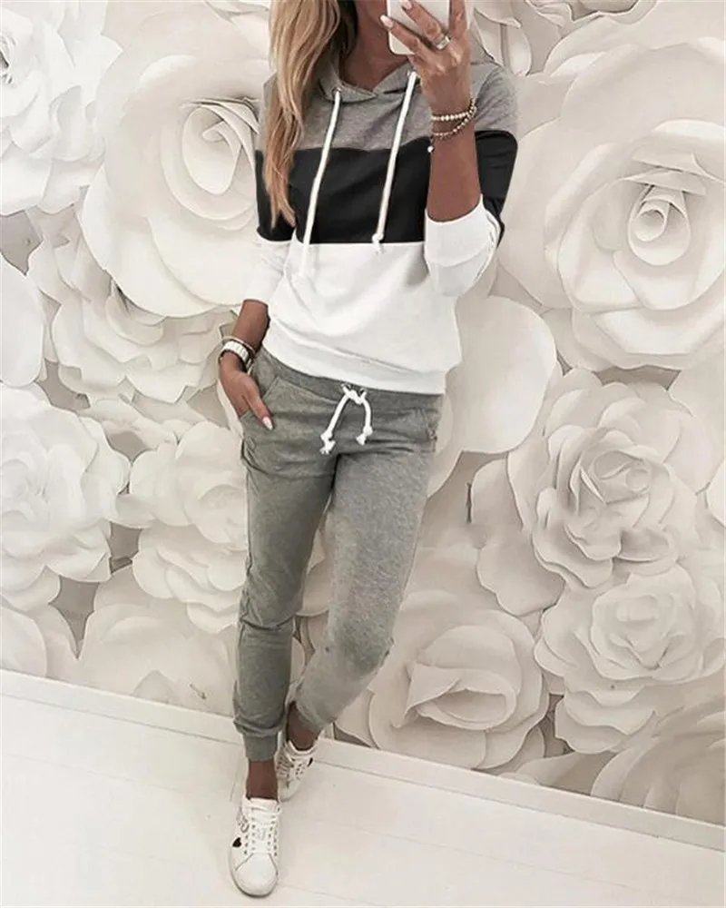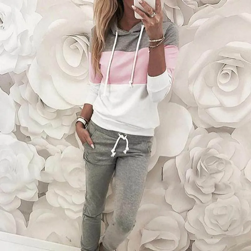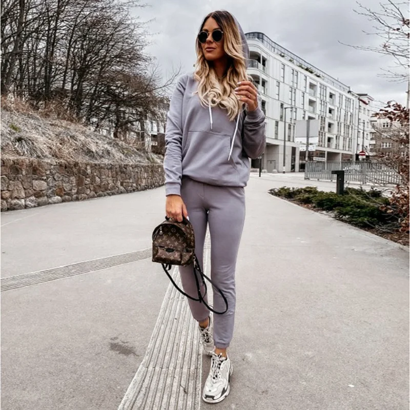 Женский спортивный костюм с капюшоном, весенний комплект из 2 предметов, с длинным рукавом и облегающими штанами, 2020