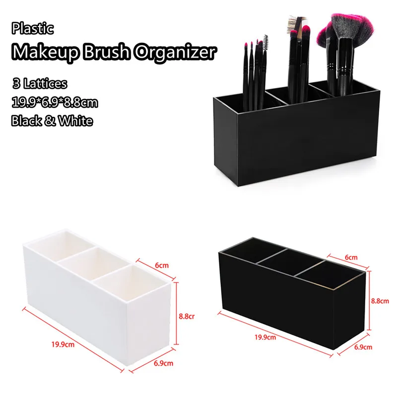 Органайзер для кистей для макияжа, 3 отделения, пластиковый настольный контейнер для косметических ручек, держатель для кистей для бровей, коробка для хранения губной помадылака для ногтей