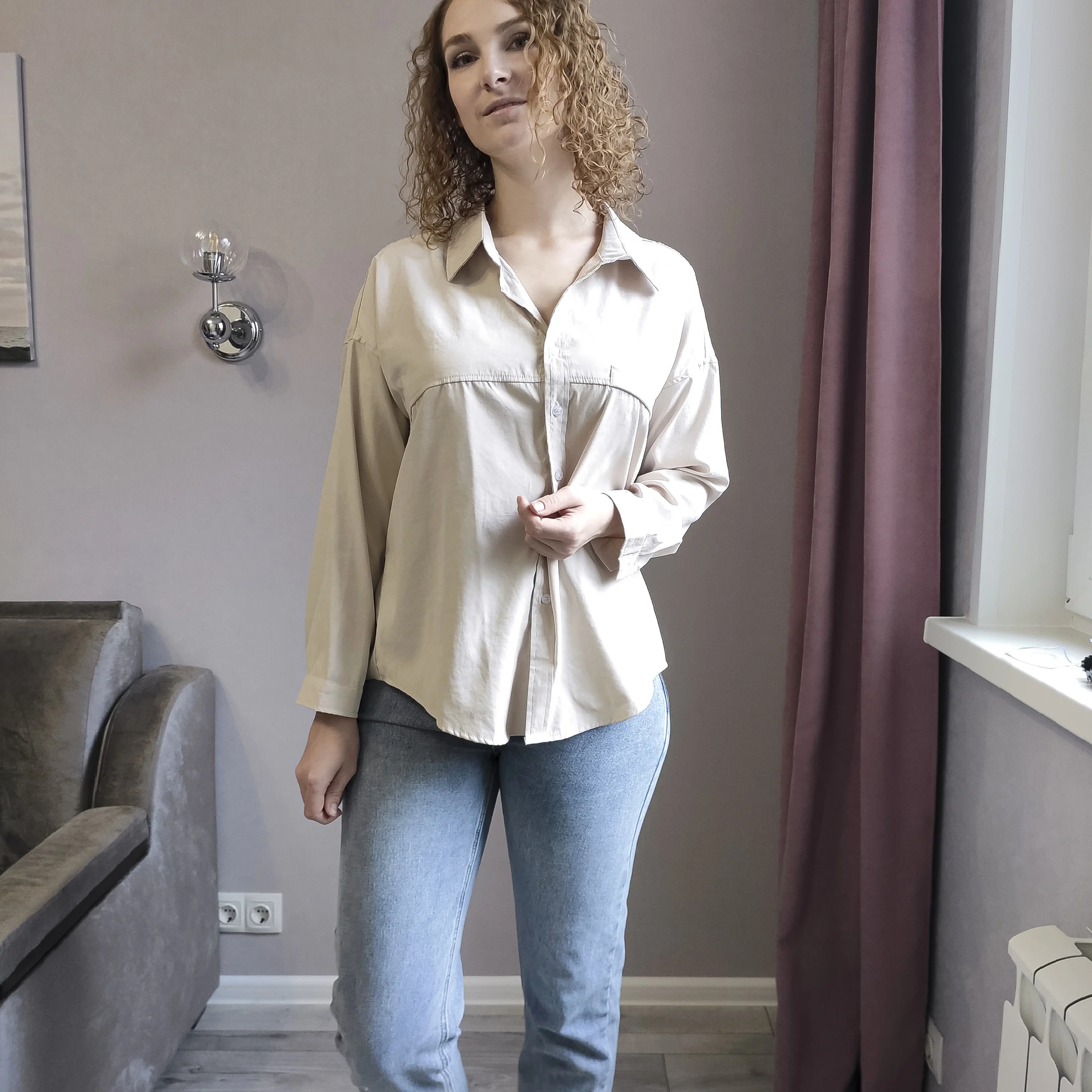 Крутая рубашка цвета Нюд Ткань приятная к телу, качество на 5+ Крой прямой. Представлена в белом, бежевом и голубом на любой вкус ) Мои параметры 88/69/89, Рост 165, вес 50 , разер М , мне очень комфортность.. люблю оверсайз Советую к покупке, отличный магазин и качественные вещи .