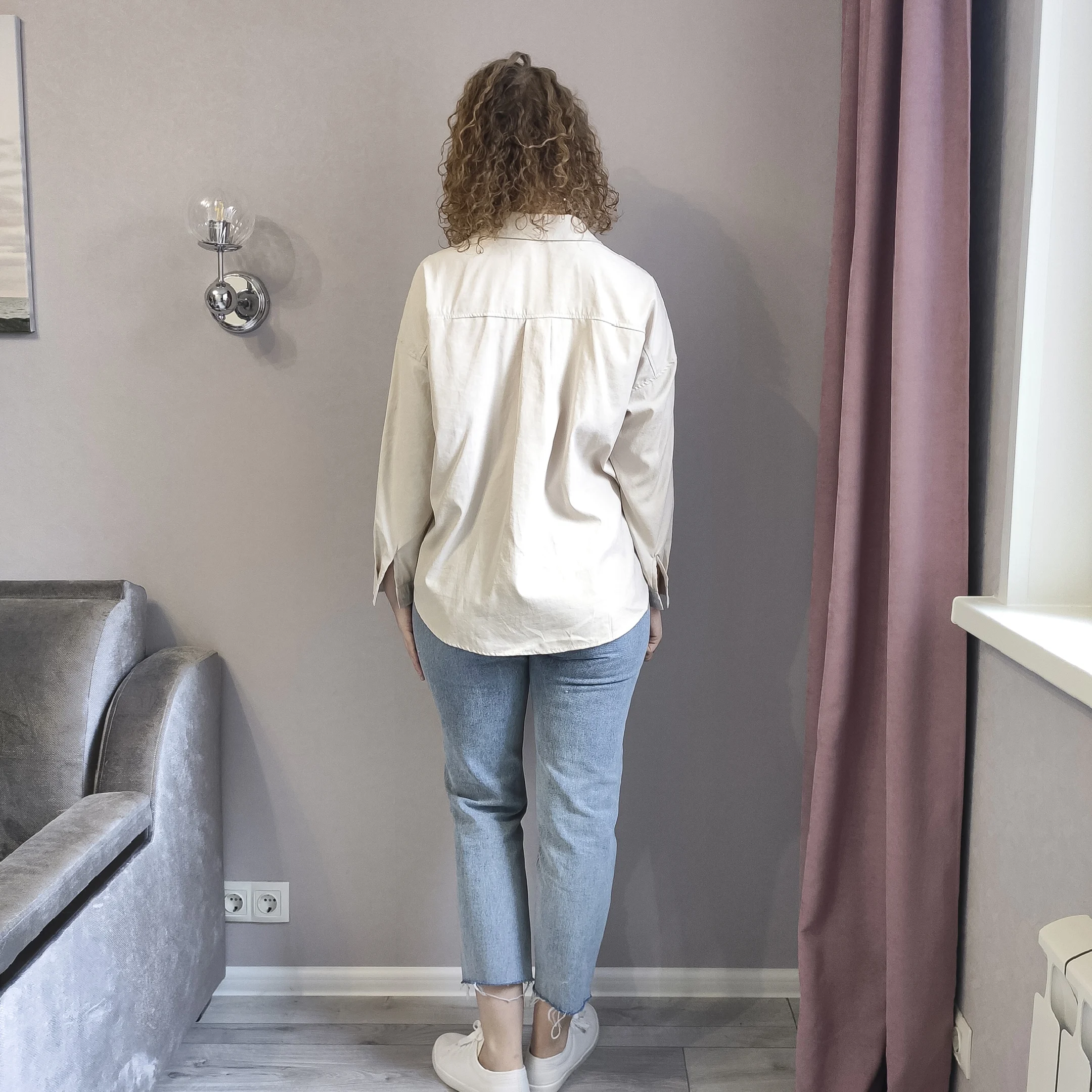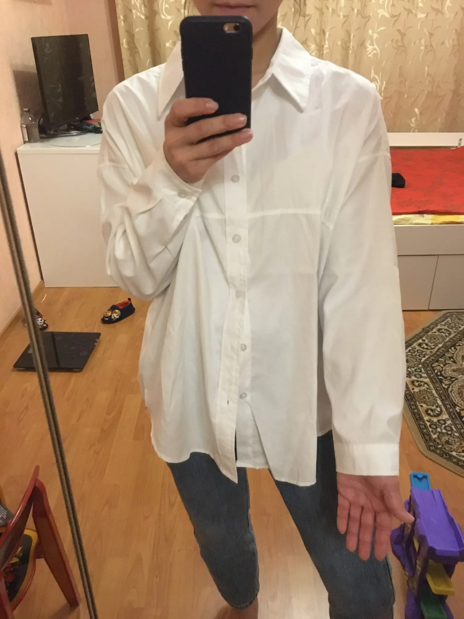 Отличная оверсайз рубашка получилась. Брала м на 42-44. Ношу её поверх однотонной водолазки или майки. Можно с кроп топом. Качество по цене огонь. Брала на 11.11 по скидкам и купонам, вышла на руб 800 где то. Шла 1,5 месяца до Хабаровска
