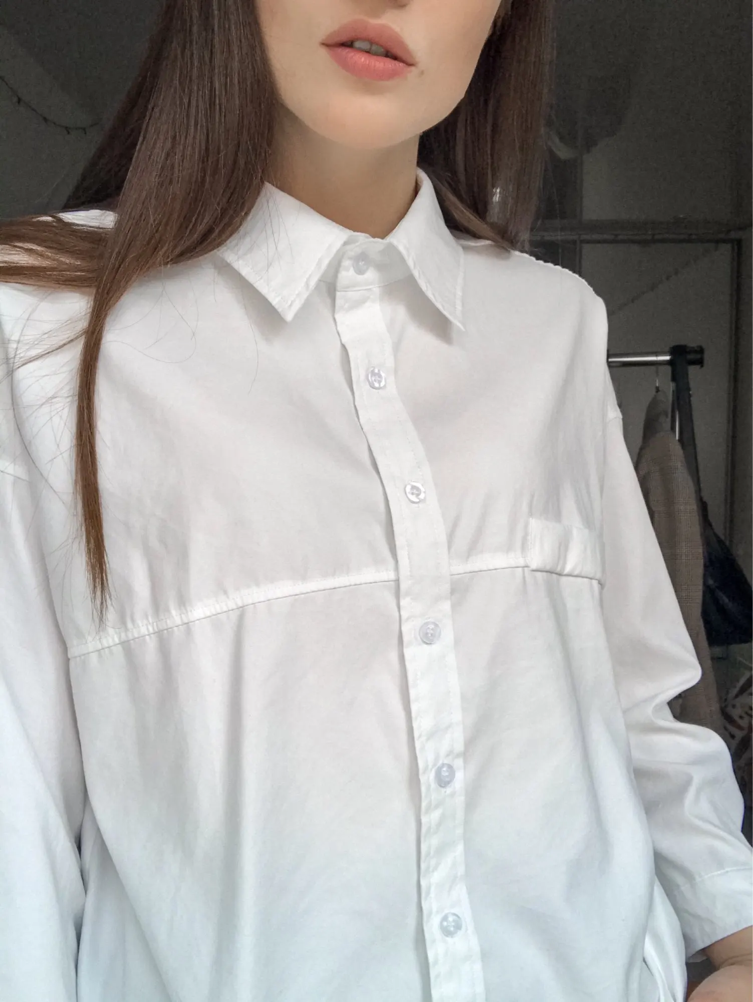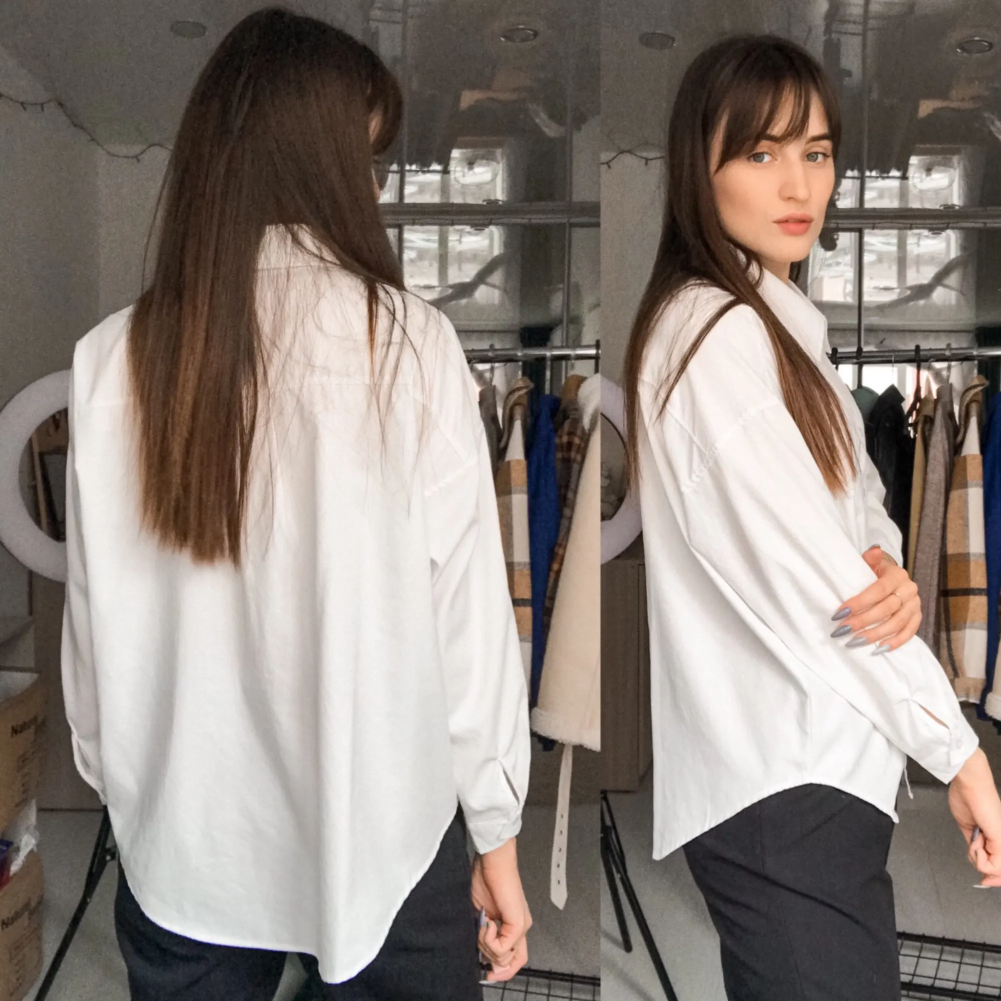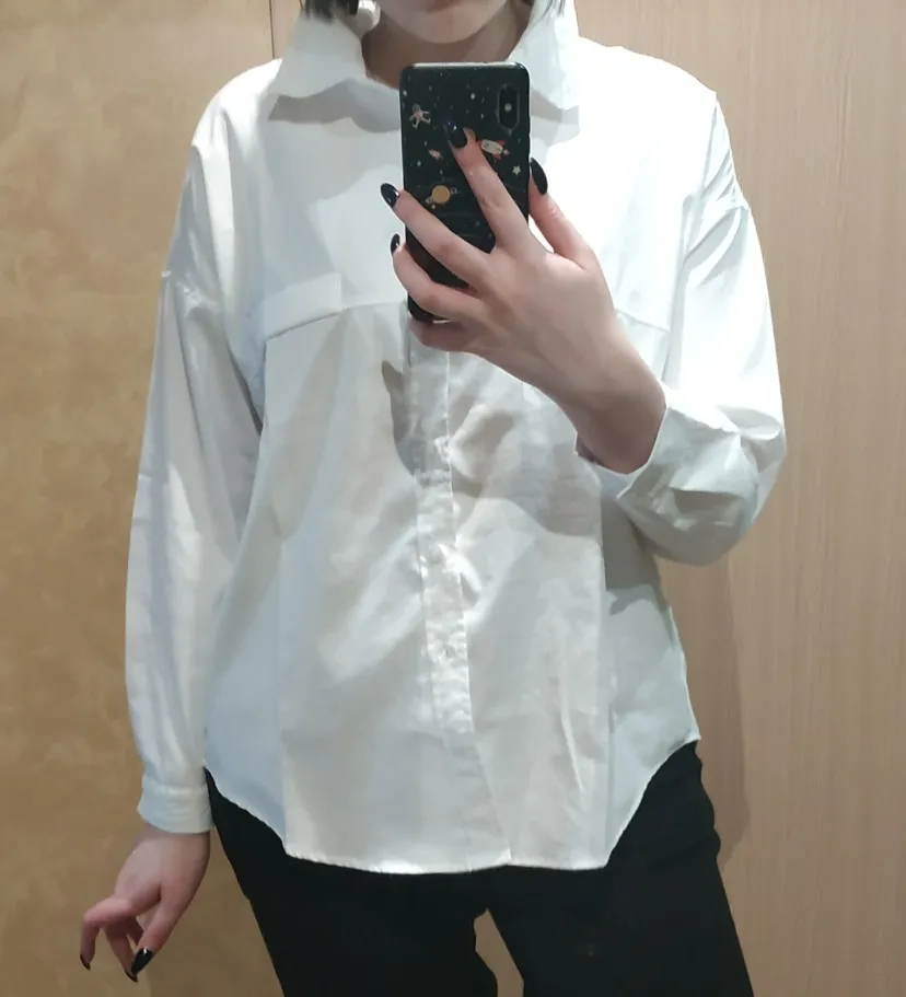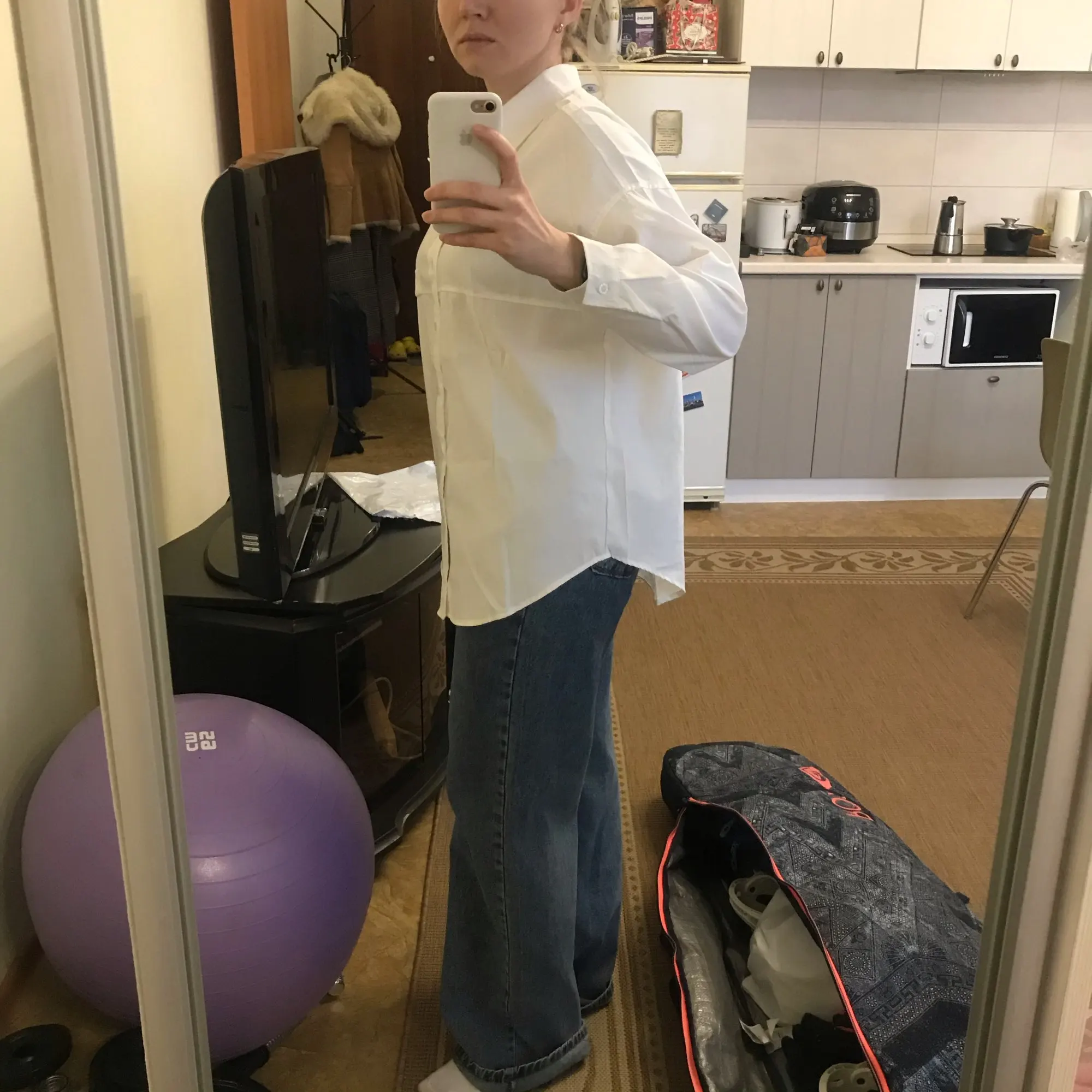 Хорошая базовая белая рубашка оверсайз, материал интересный. закажу себе в другом цвете чуть позже.