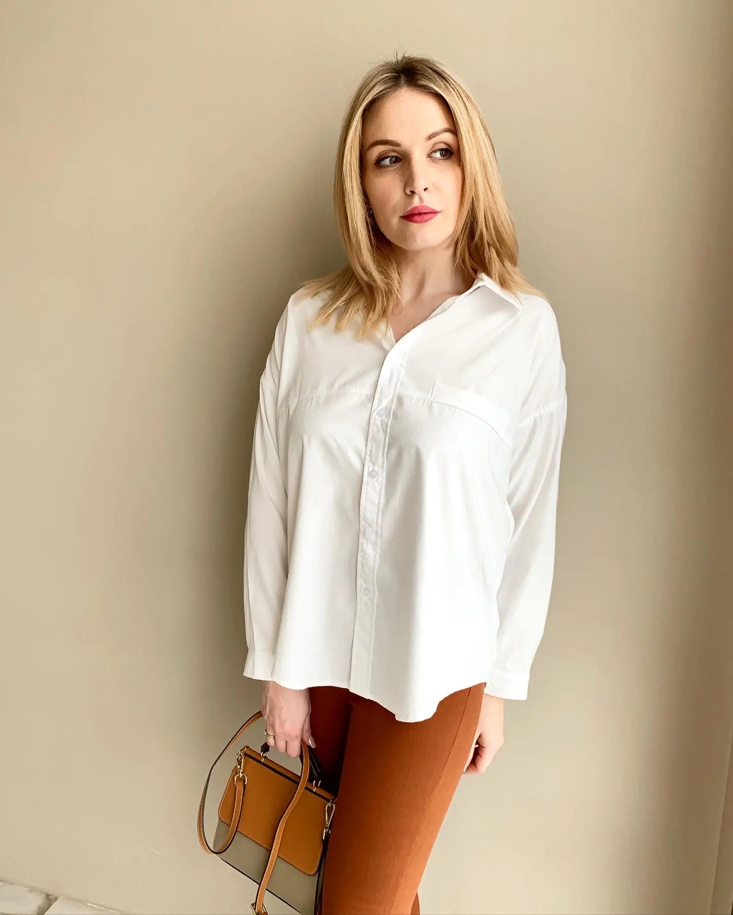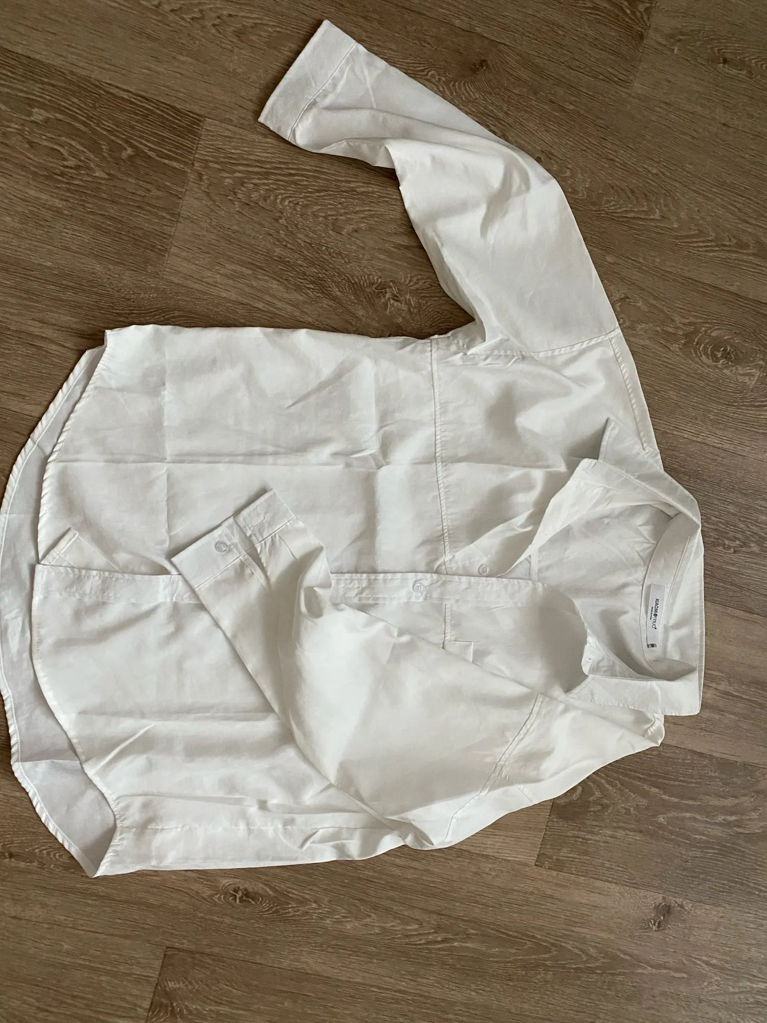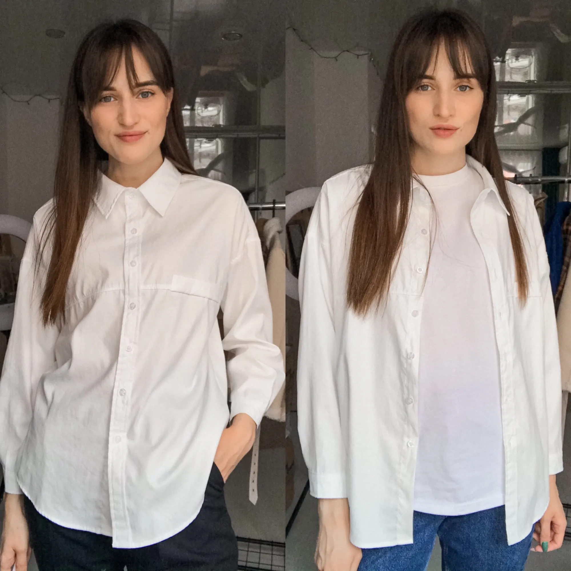 Хорошая базовая белая рубашка оверсайз, материал интересный. закажу себе в другом цвете чуть позже.