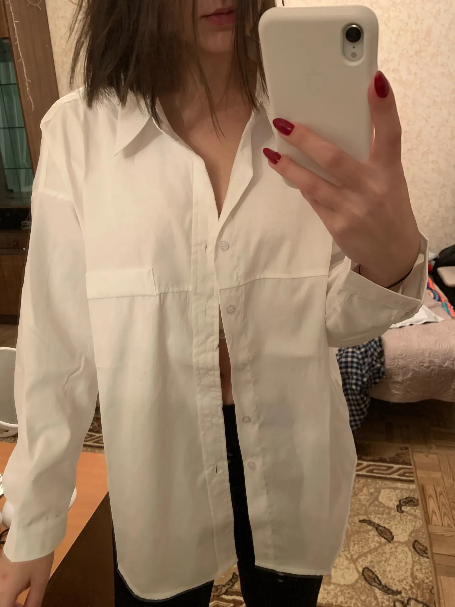Рубашка На мне размер М Цвет White Размер М на мои параметры Рост: 175см. Объём груди: 86см. Объём талии: 65см. Объём бёдер: 94см. сел как полноценный оверсайз. По размеру хорошо будет вплоть до 46-го российского размера точно. Качество понравилось. Очень интересная ткань. На ощупь мягкая, немного бархатная и достаточно плотная. Практически не просвечивает. Кармашка нет, это обманка. На бирке с рекомендациями по уходу пришита запасная пуговица. Доставка заняла 20 дней до Ставрополя. Больше моих обзоров и ссылки на товары можете найти: В ИНСТАГРАМ, ТЕЛЕГРАМ и ТИКТОК по нику SONKASERGEEVNA