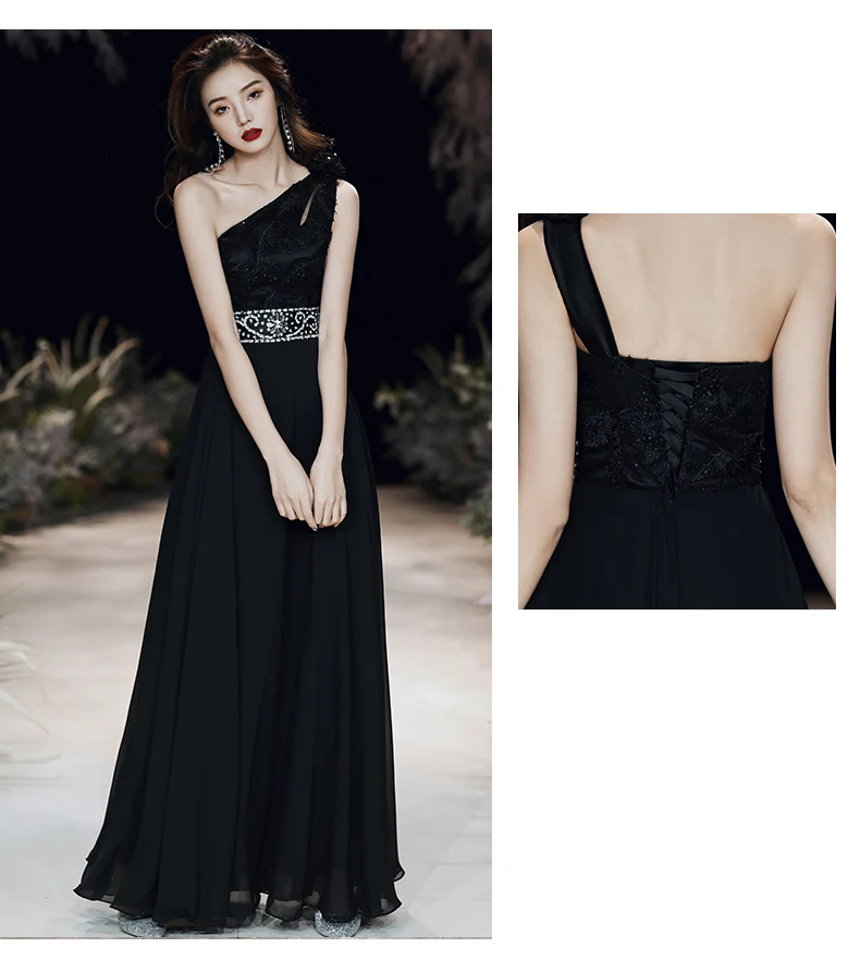 Женское шифоновое вечернее платье, длинное ТРАПЕЦИЕВИДНОЕ черное платье с лямкой на шее, модель W4337, 2020