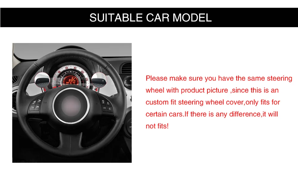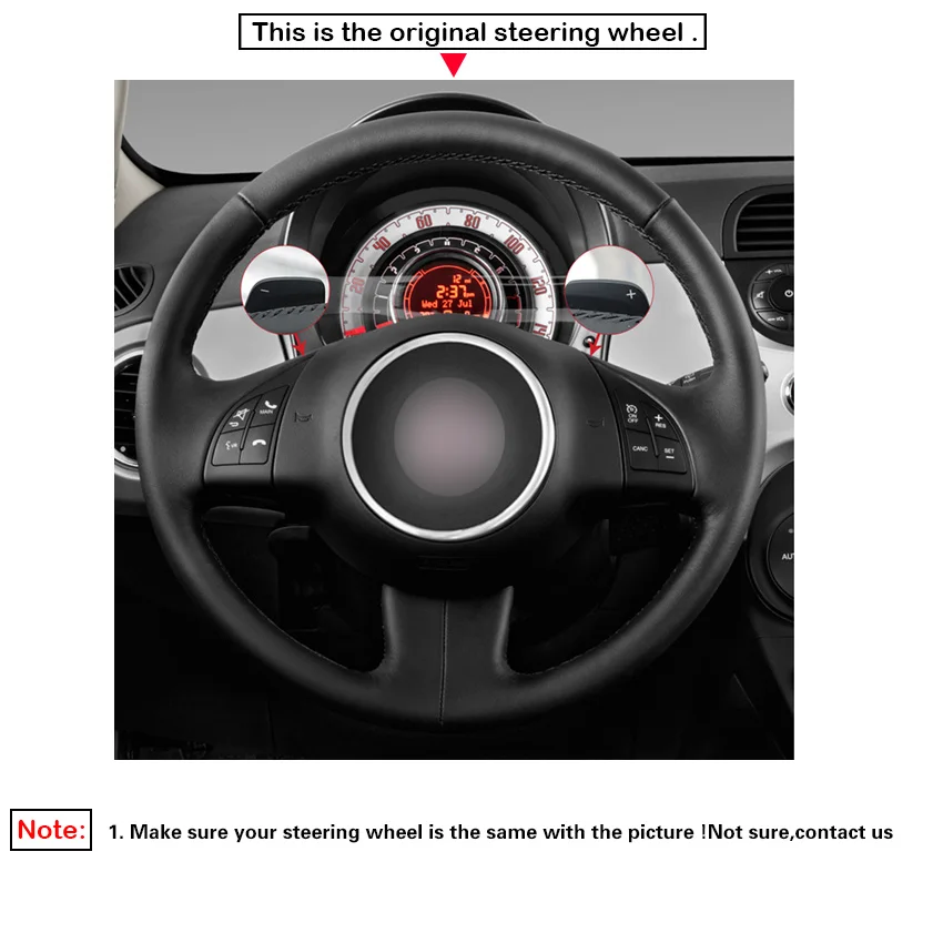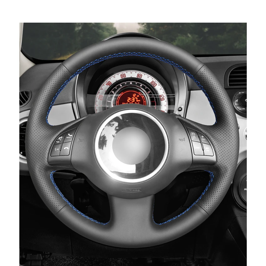 Чехол на руль автомобиля из черной искусственной кожи сделай сам для Fiat 500 2007-2015 500e 2014-2018 500C 2014-2017