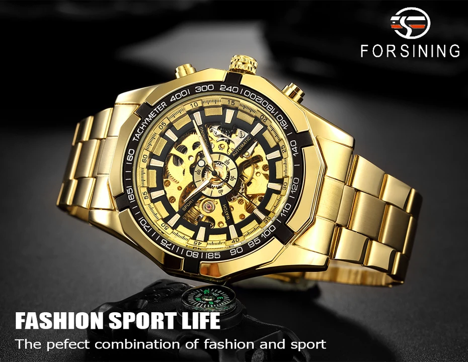 Часы наручные Forsining Мужские механические, водонепроницаемые брендовые Роскошные прозрачные Спортивные, из нержавеющей стали 2022