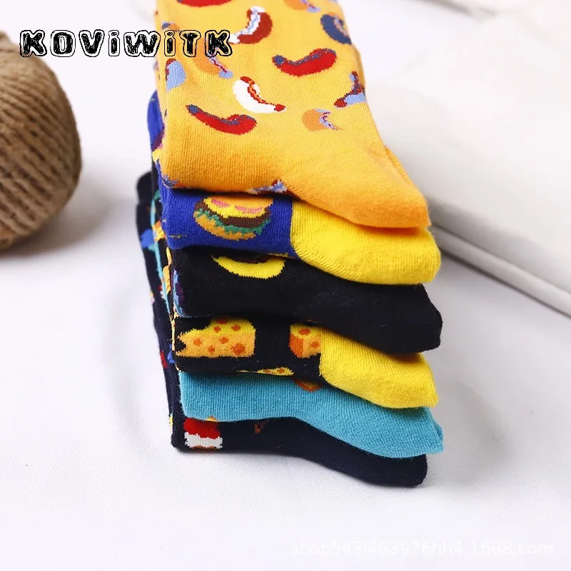 Хлопковые черные носки для женщин, смешные короткие женские повседневные носки в стиле Харадзюку с изображением гамбургера, пиццы, сыра