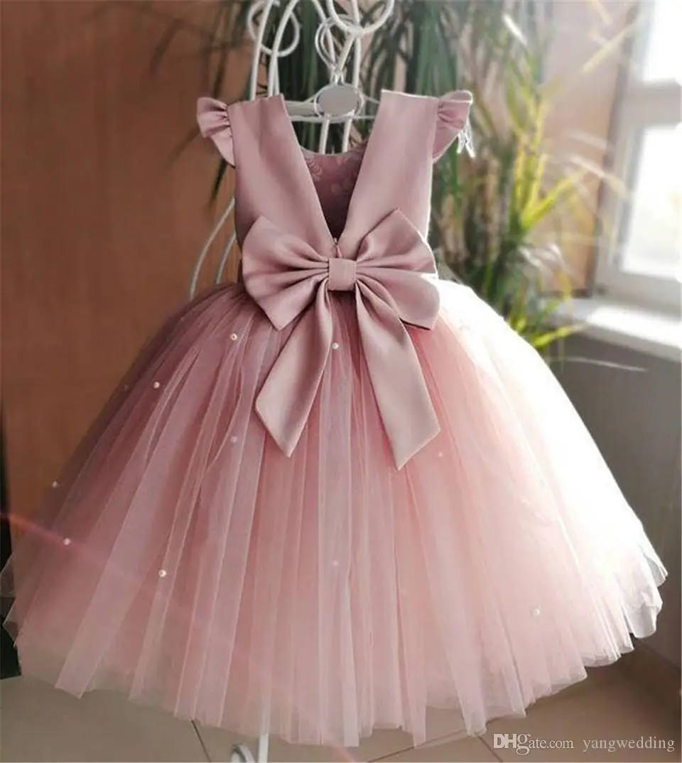 Тюлевые платья длиной до щиколотки с цветочным принтом для девочек, свадебное платье с бусинами для первого причастия, пышные платья с открытой спиной и бантом для девочек, платье для выпускного вечера