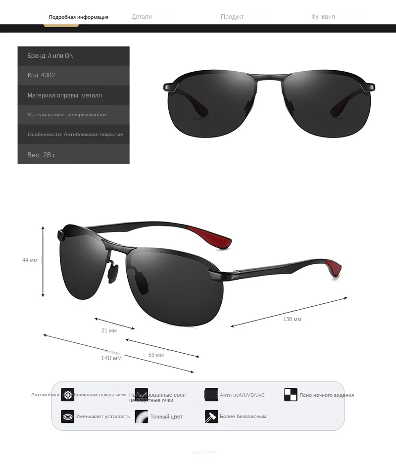 Страна: RU Lenses Color: Gray - Black Lens Frame Color: Glasses Bag Доставка: Standard Shipping 06.10.2020