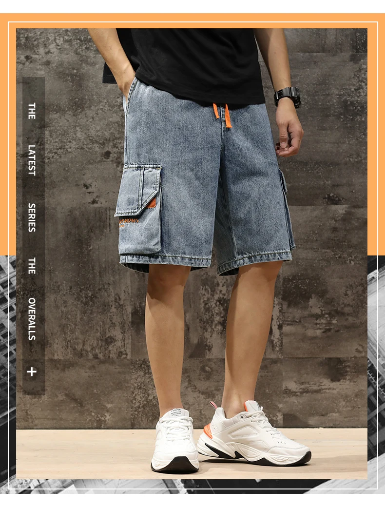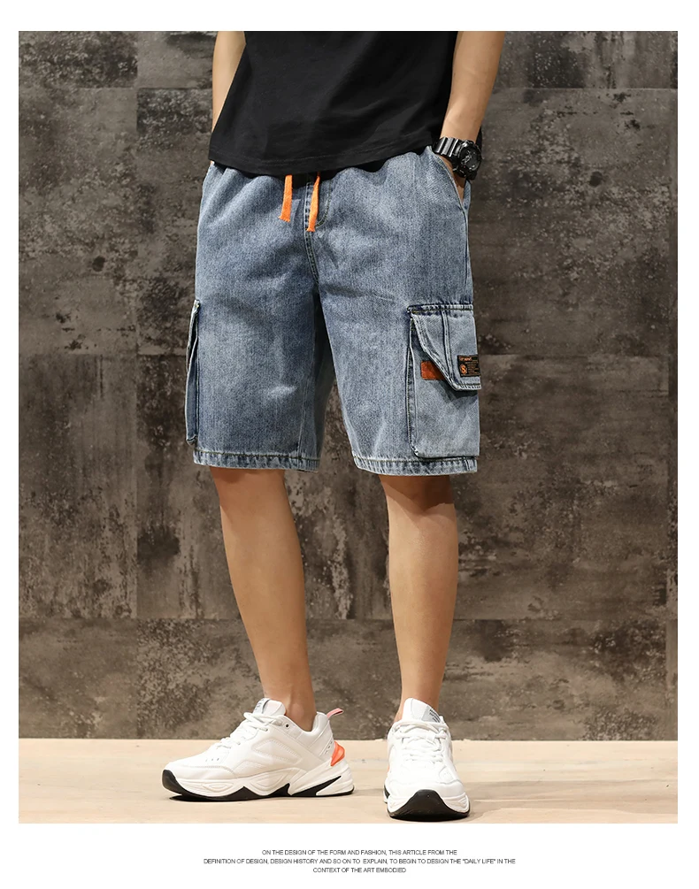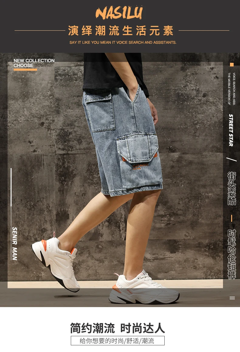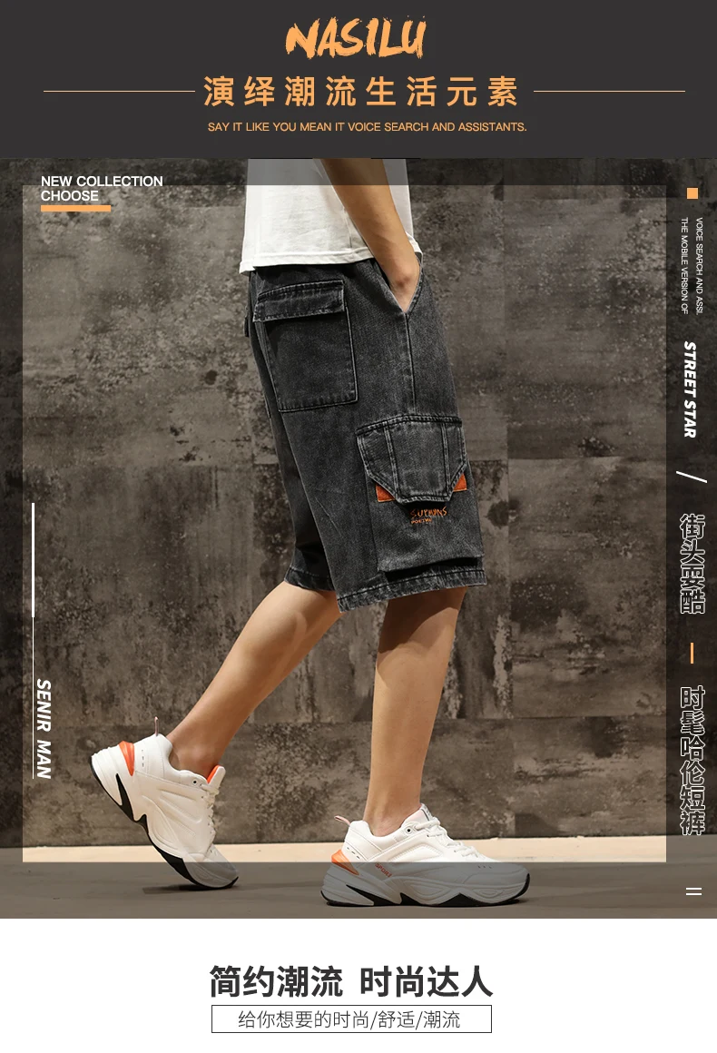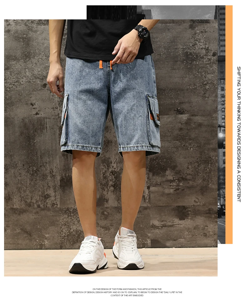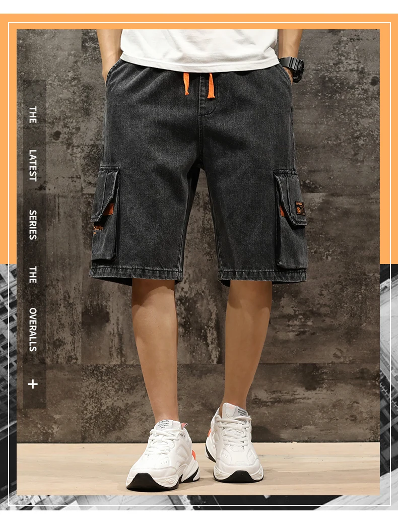 Шорты мужские джинсовые с эластичной талией, бриджи-бермуды, повседневные модные штаны-карго с большими карманами, уличная одежда, лето 2021
