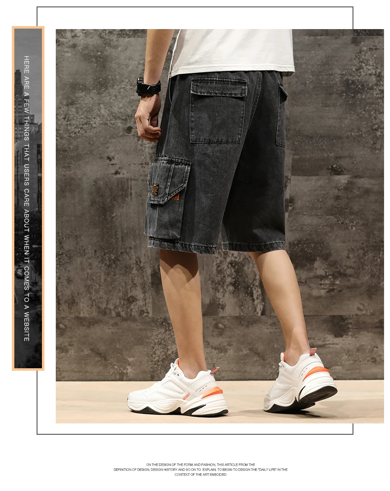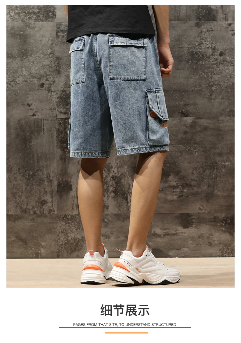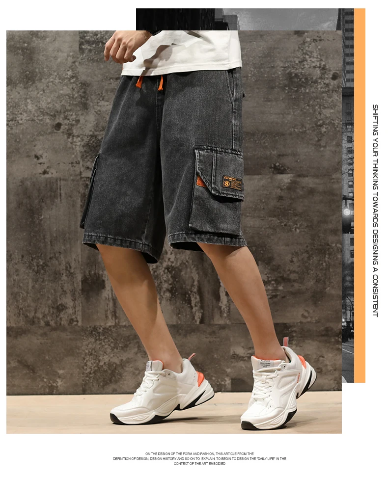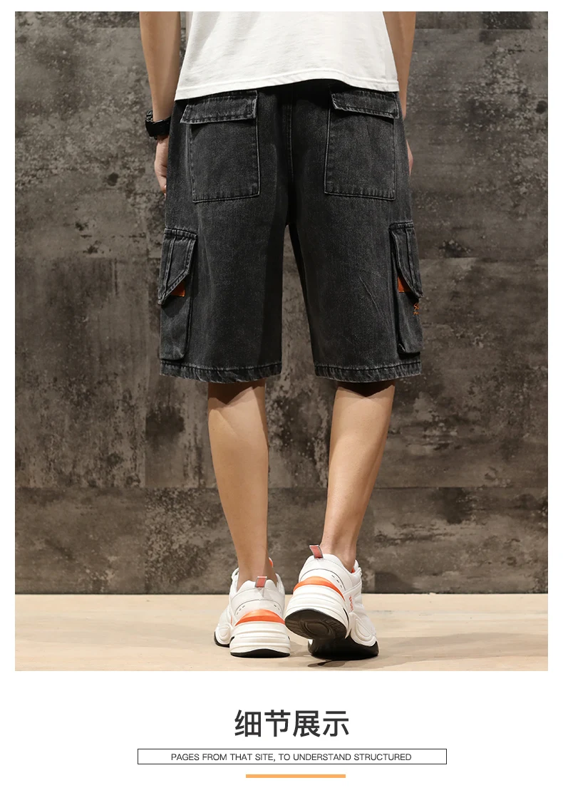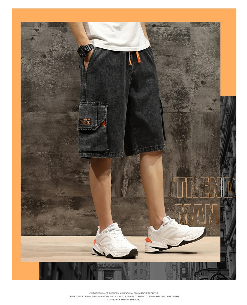Шорты мужские джинсовые с эластичной талией, бриджи-бермуды, повседневные модные штаны-карго с большими карманами, уличная одежда, лето 2021