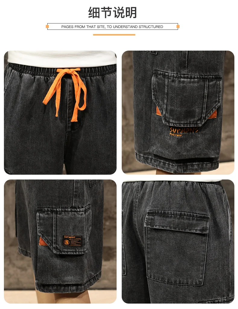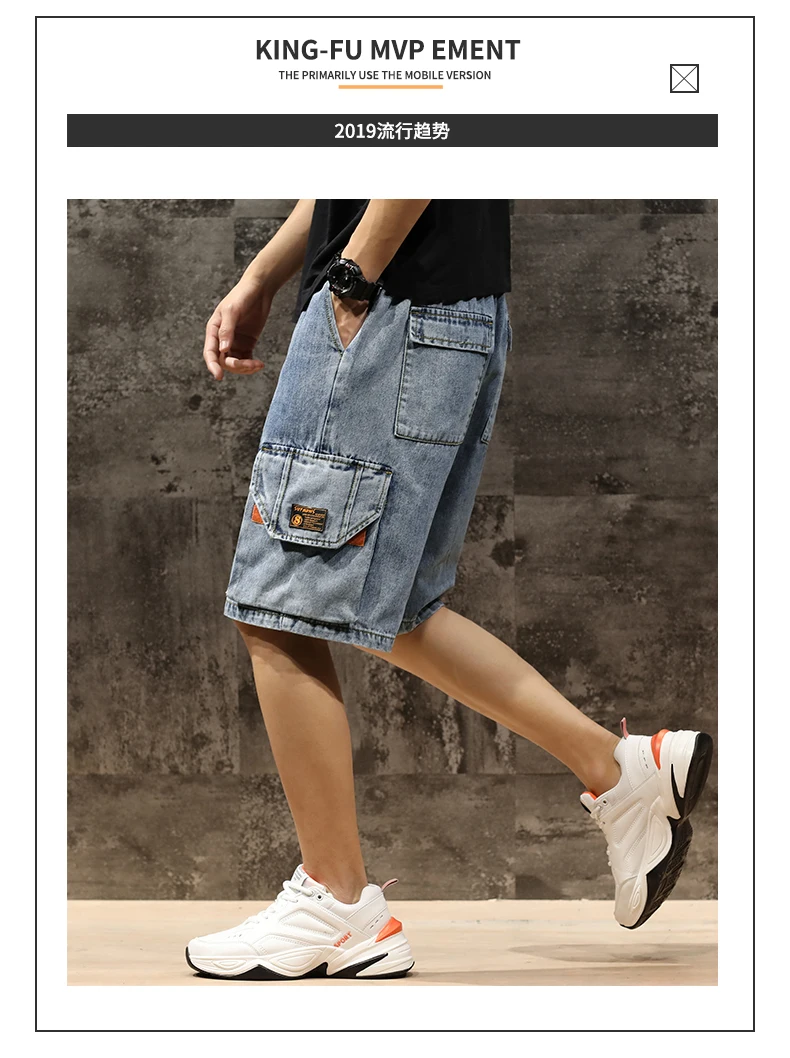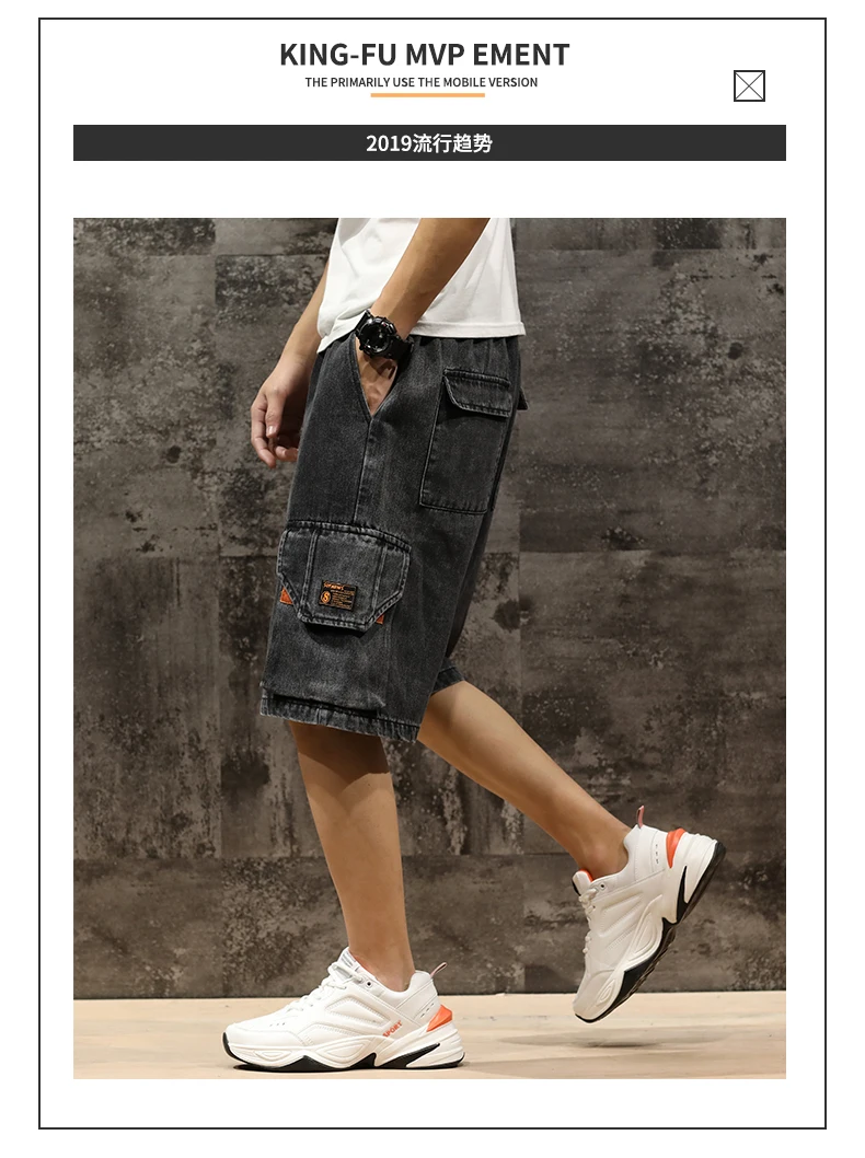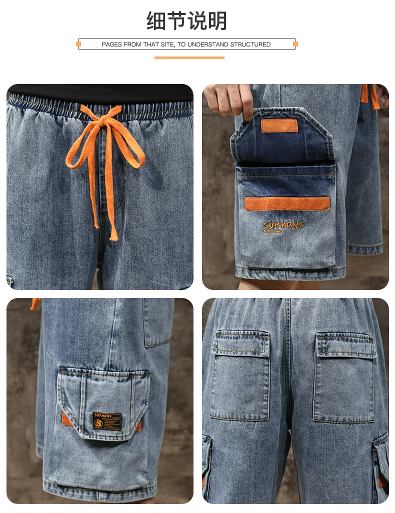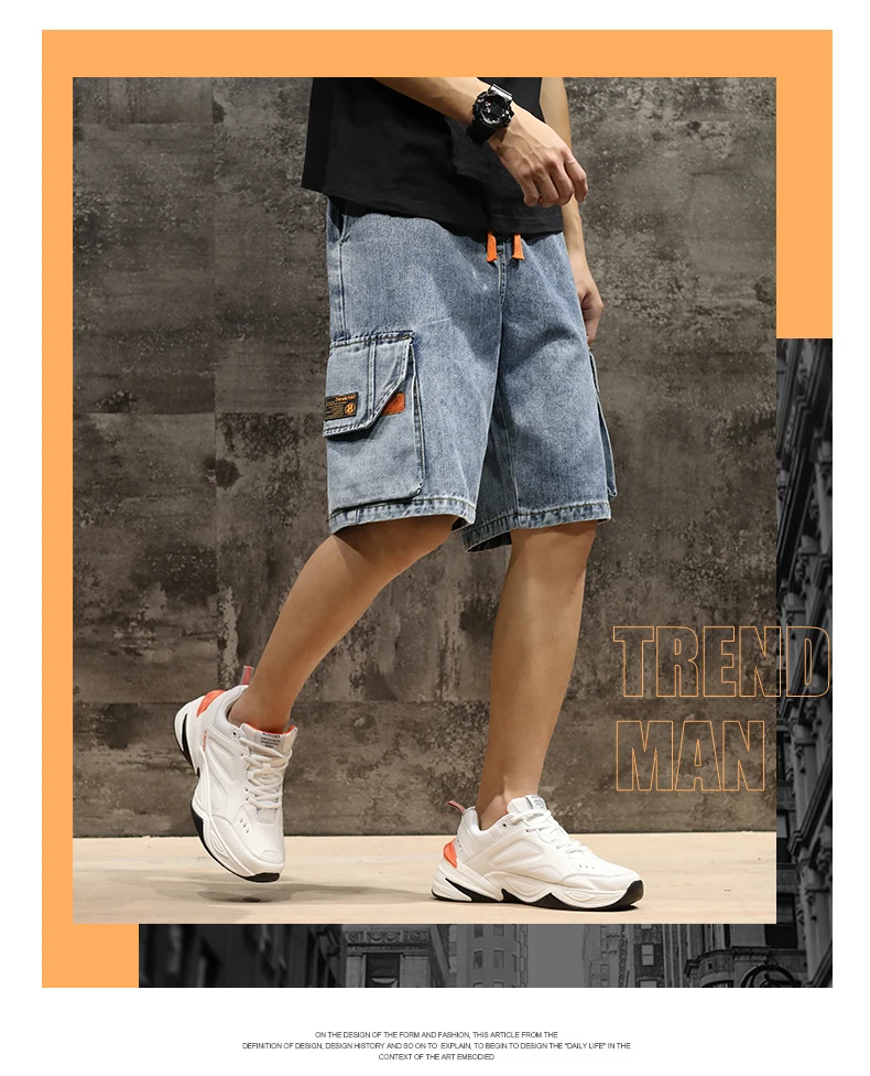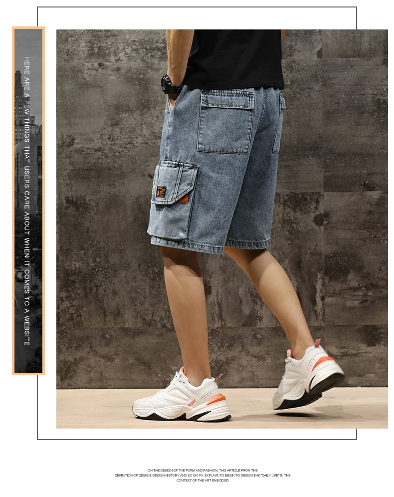Шорты мужские джинсовые с эластичной талией, бриджи-бермуды, повседневные модные штаны-карго с большими карманами, уличная одежда, лето 2021