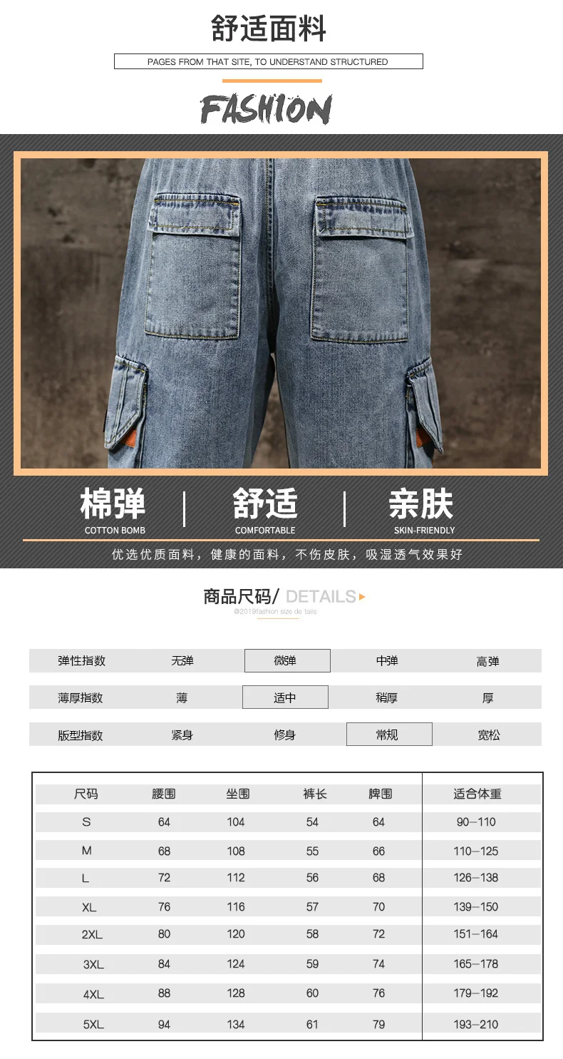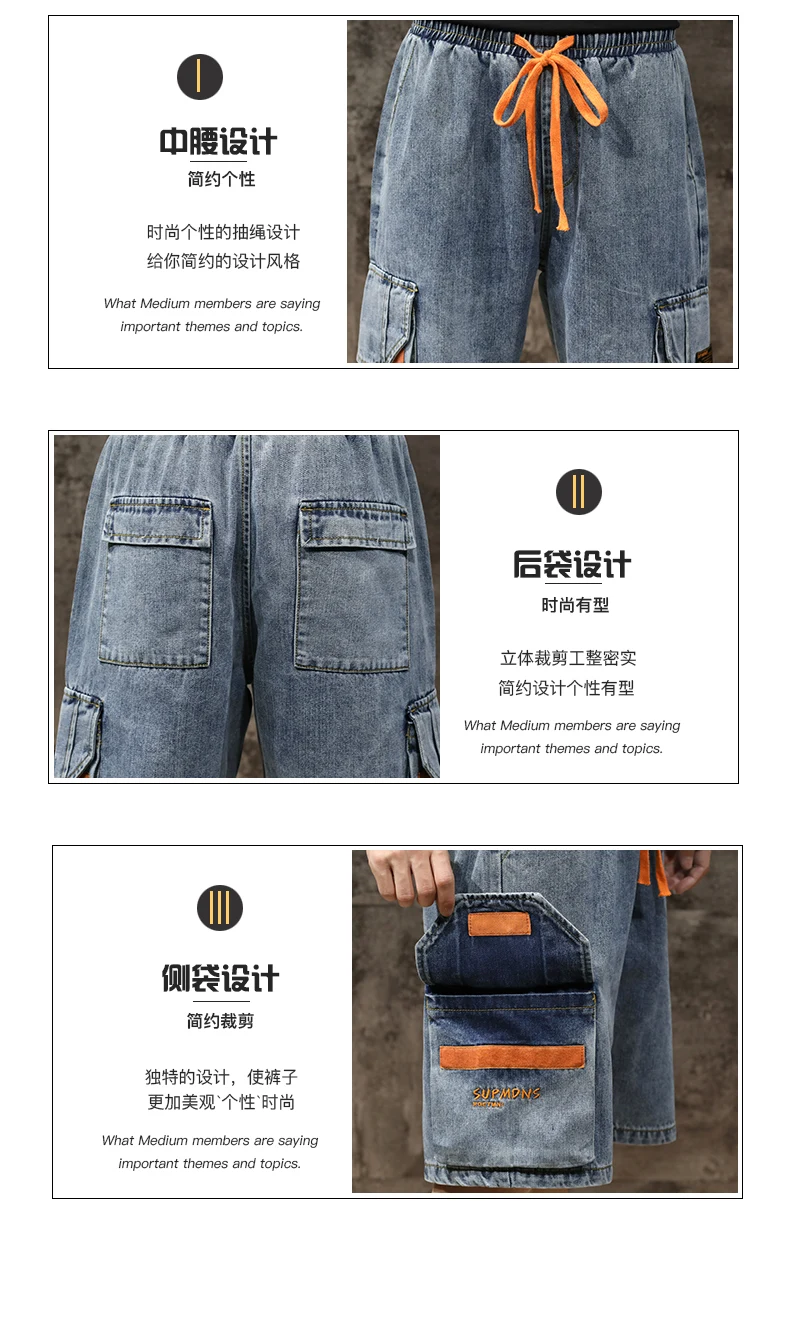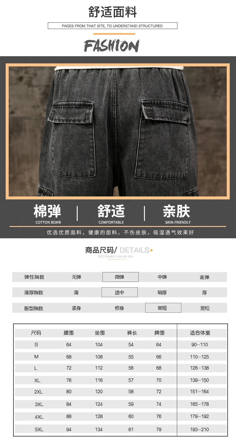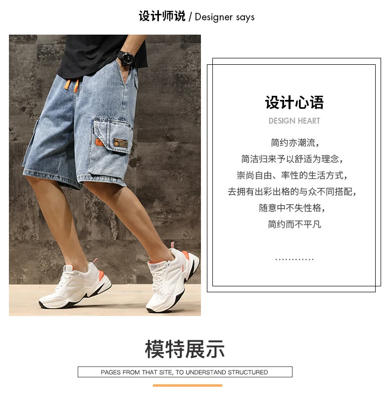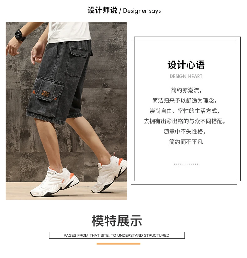 Шорты мужские джинсовые с эластичной талией, бриджи-бермуды, повседневные модные штаны-карго с большими карманами, уличная одежда, лето 2021