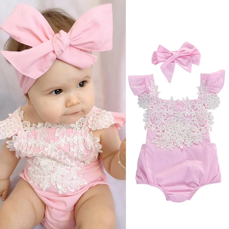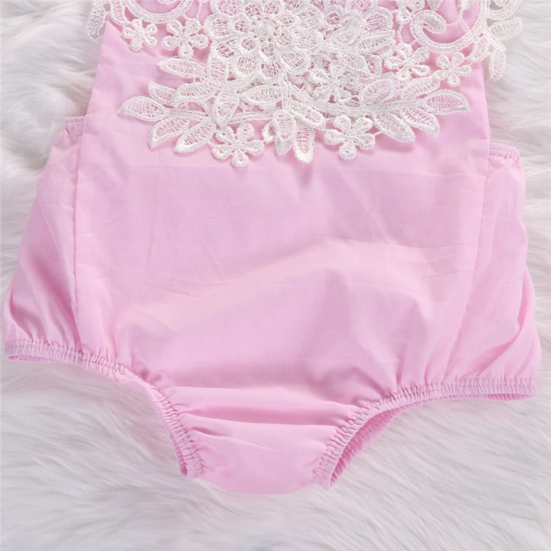 Комбинезон детский, без рукавов, розовый, кружевной Цветочный