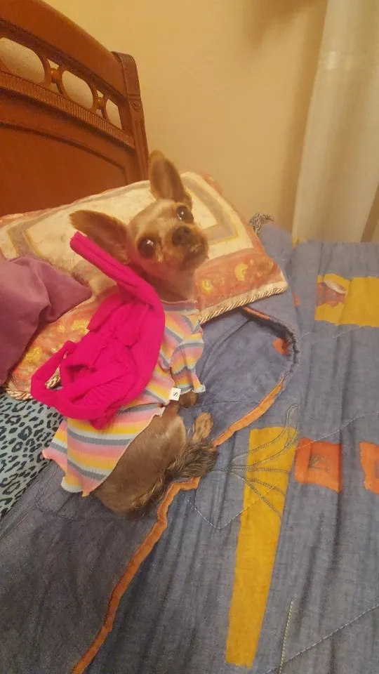 Очень мило. Размеры немного раздражают, но все подошло нормально. Я получил XL для своей 11-летней мини таксы. Идеально подходит (ish) сейчас, не будет хорошо в течение нескольких недель, так как это не будет достаточно долго для ее тела.