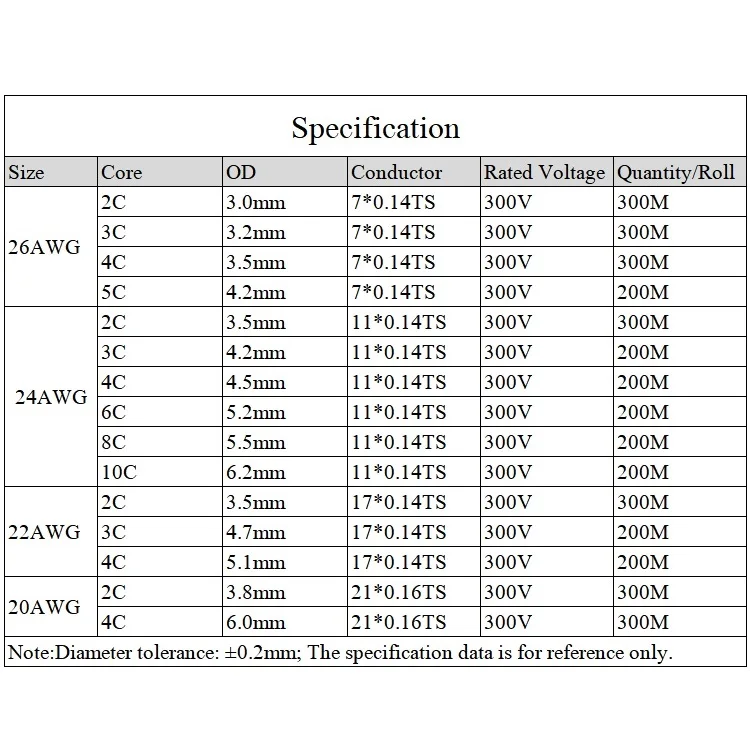 Провод с покрытием UL2464 длиной 10 м, Провод 16AWG 2, 3, 4, 5, 6, ...