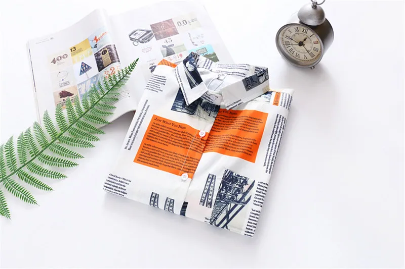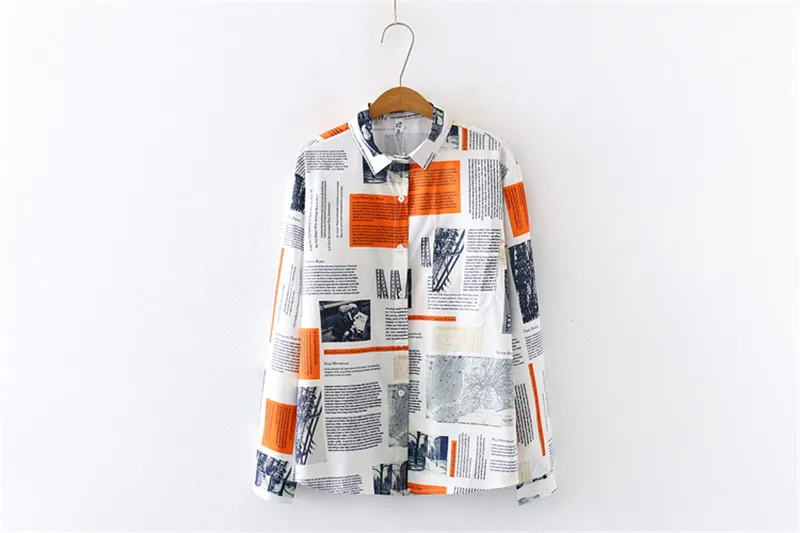 Женская шифоновая блузка, с принтом в виде газет, с длинным рукавом, винтажные топы, повседневная одежда, для осени, T02808Y, 2020