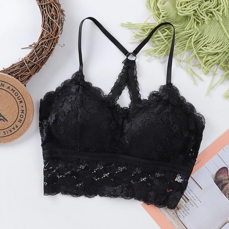 Кружевной бюстгальтер с красивой спинкой, топ, женский укороченный топ, нижнее белье, сексуальный бюстгальтер без косточек, модное женское нижнее белье, топы, бюстгальтер с мягкими чашечками
