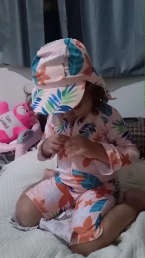 На внешний вид все ок. Только козырек сильно на глаза находит, но может из за того что купили на перед, пока костюм сильно велик. Нам 10 месяцев, сейчас штанишки не до колен, а до пола.