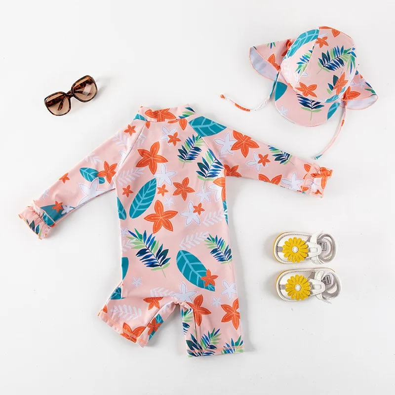 2021 модный купальный комплект для девочек, купальник для серфинга, купальный костюм для бассейна, пляжный купальник + шапочка
