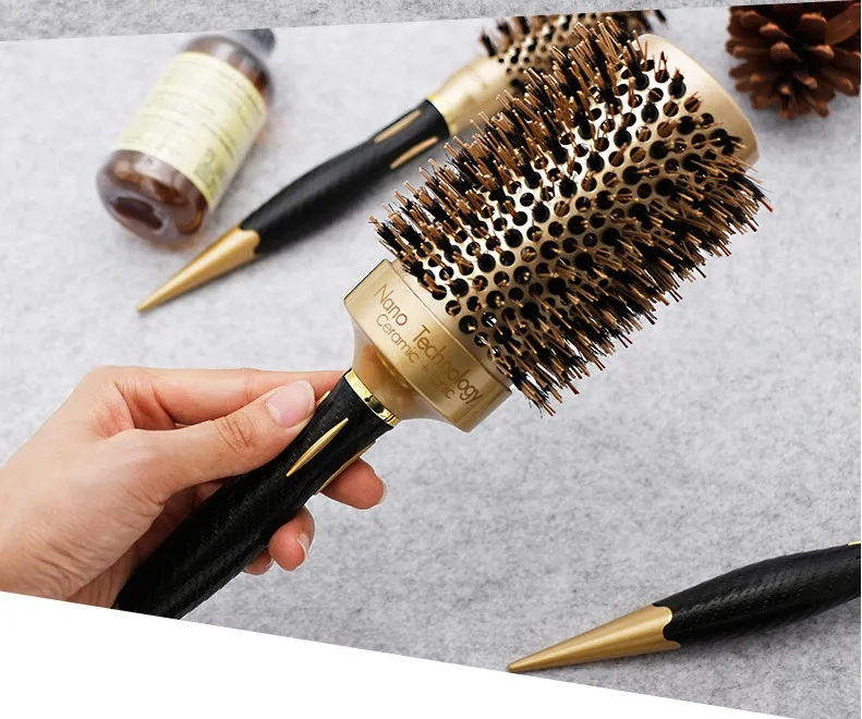 Керамический железный бочонок и щетина помогают уменьшить излишки и добавить блеск, создавая гладкую, мягкую текстуру от корней до концов.