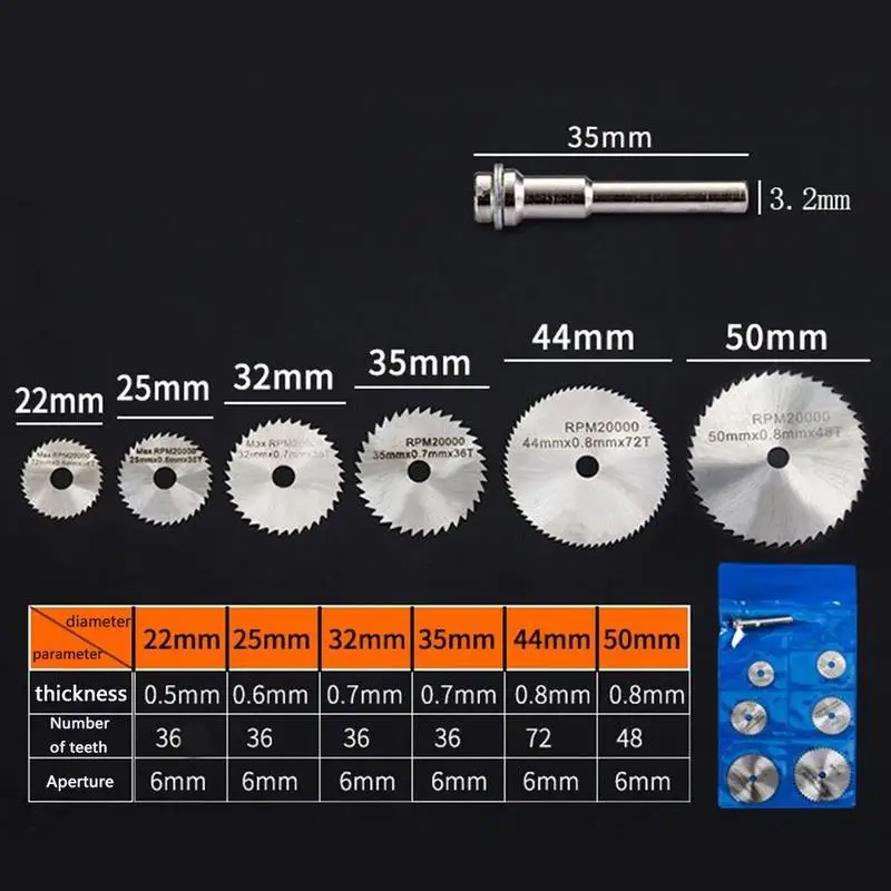 Электрический шлифовальный станок, вращающийся инструмент для резки древесины, диск для сверления 7 шт. маленький диск для пилы, набор высокоскоростных стальных режущих лезвий