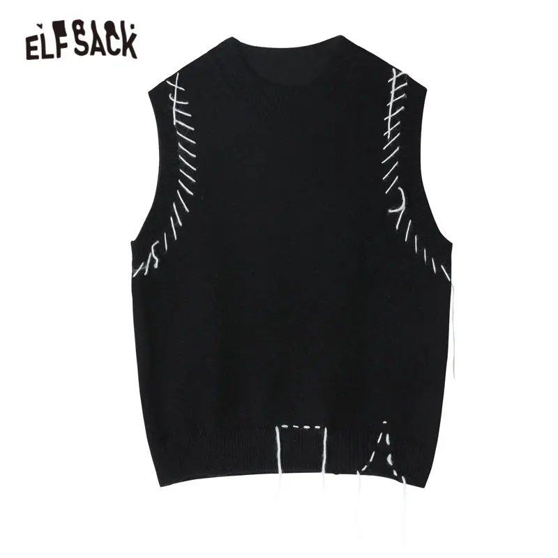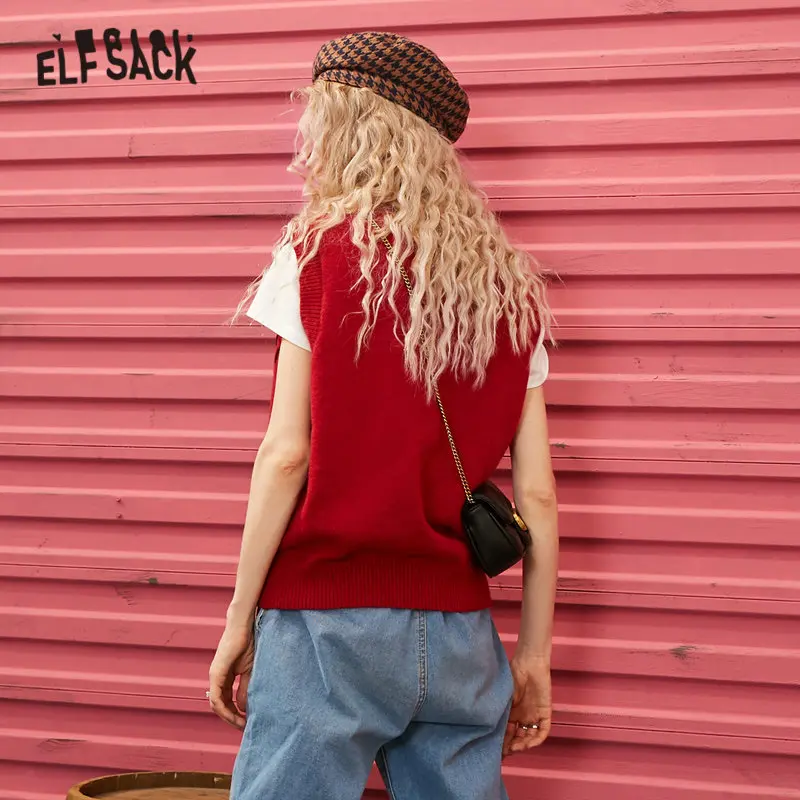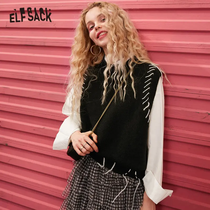 Женский Однотонный свитер ELFSACK, Черный винтажный пуловер без рукавов в стиле преппи, Повседневный Сарафан, весна 2020