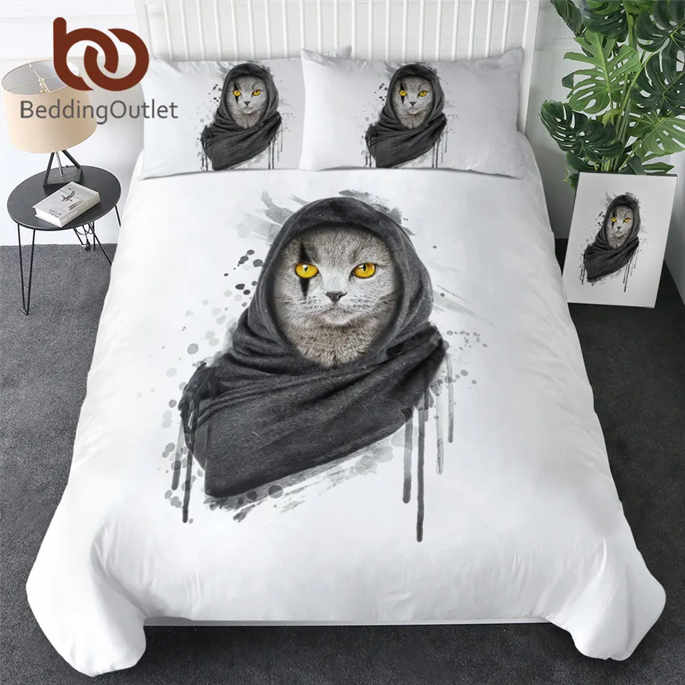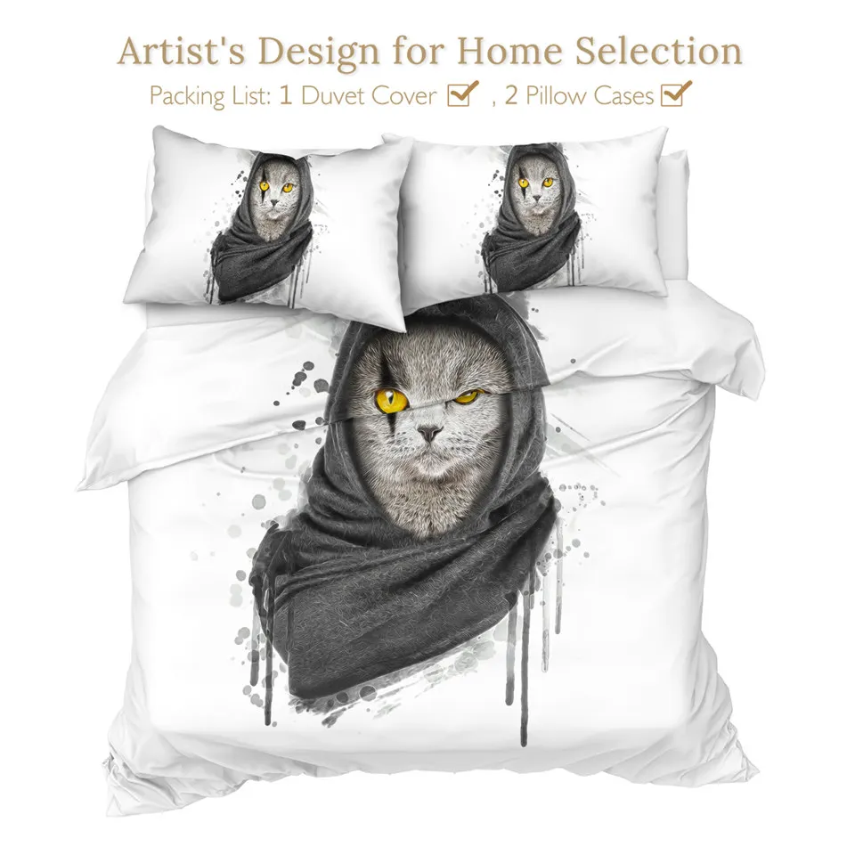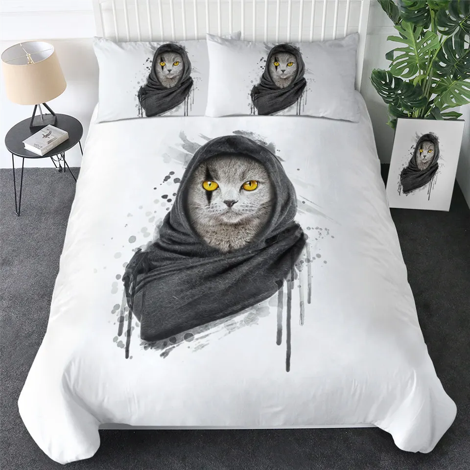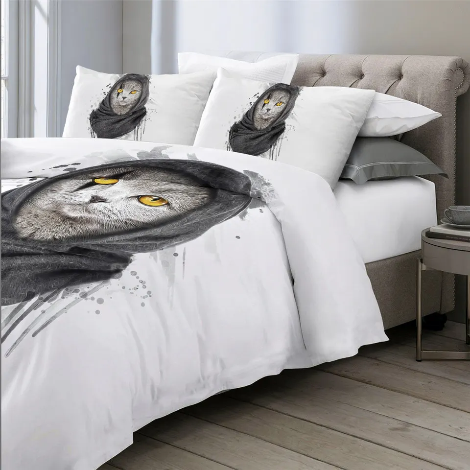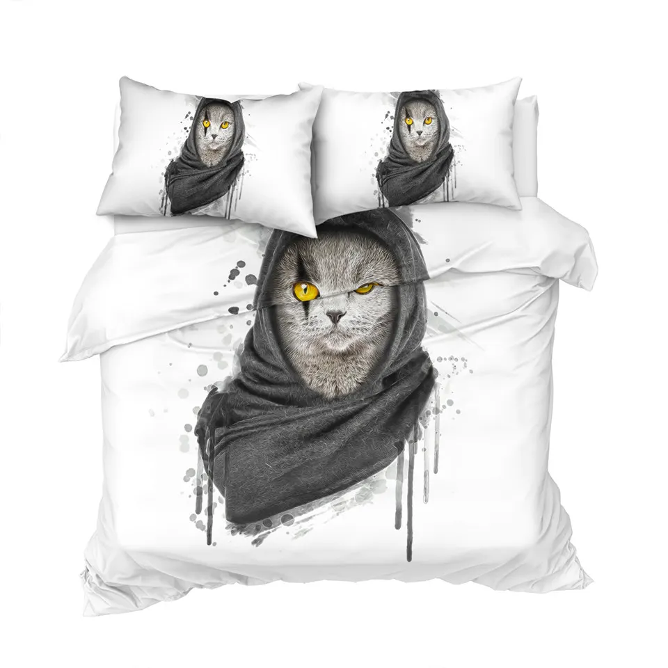Комплект постельного белья с котом, шейный платок, пододеяльник King, черный, серый, украшение для дома, постельное белье с животными, Современный Пододеяльник