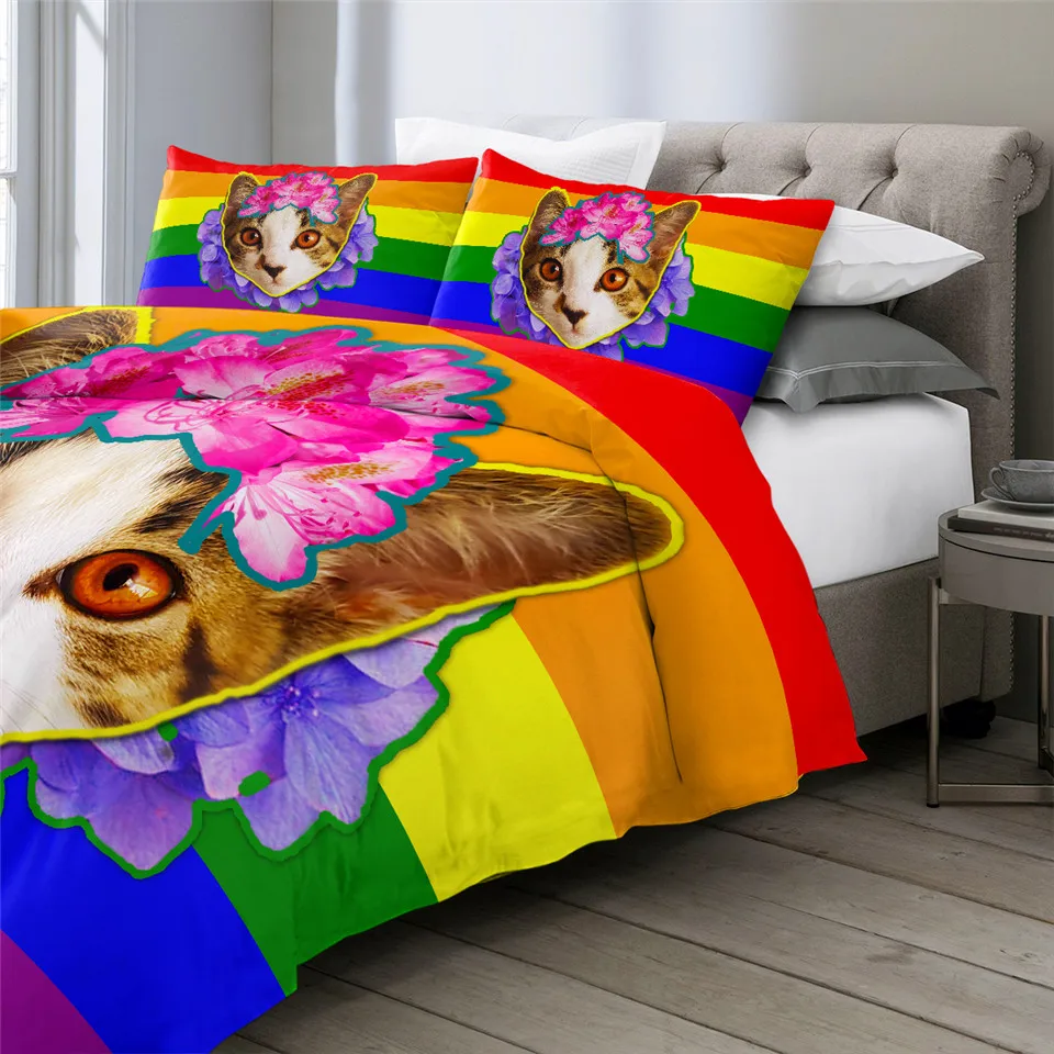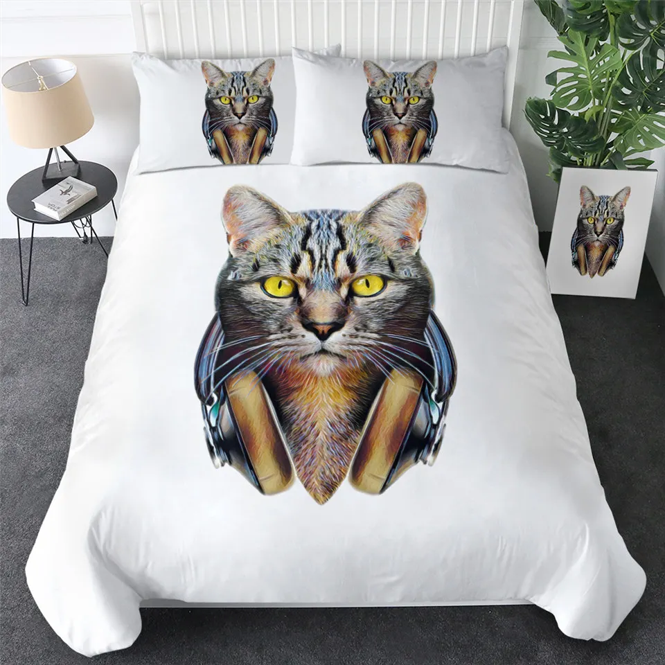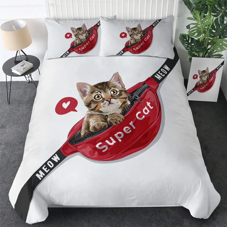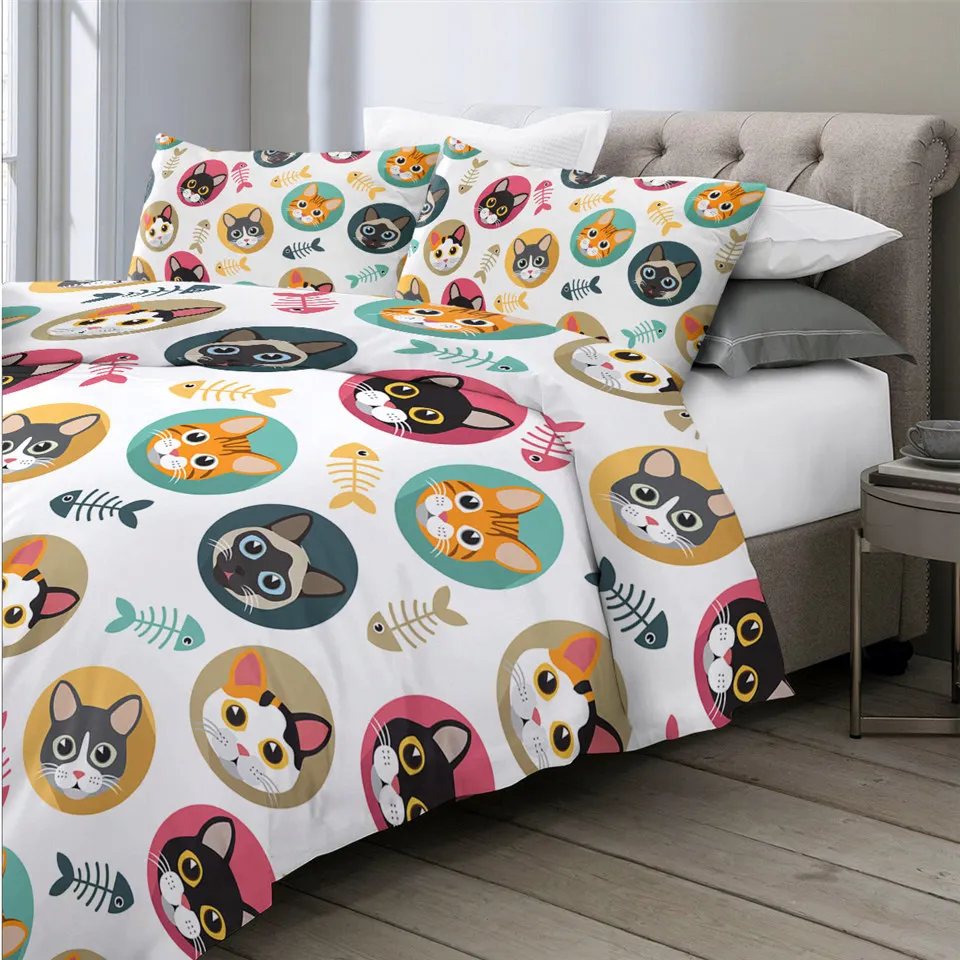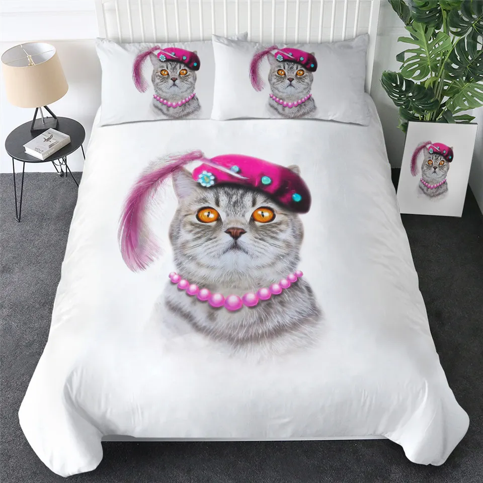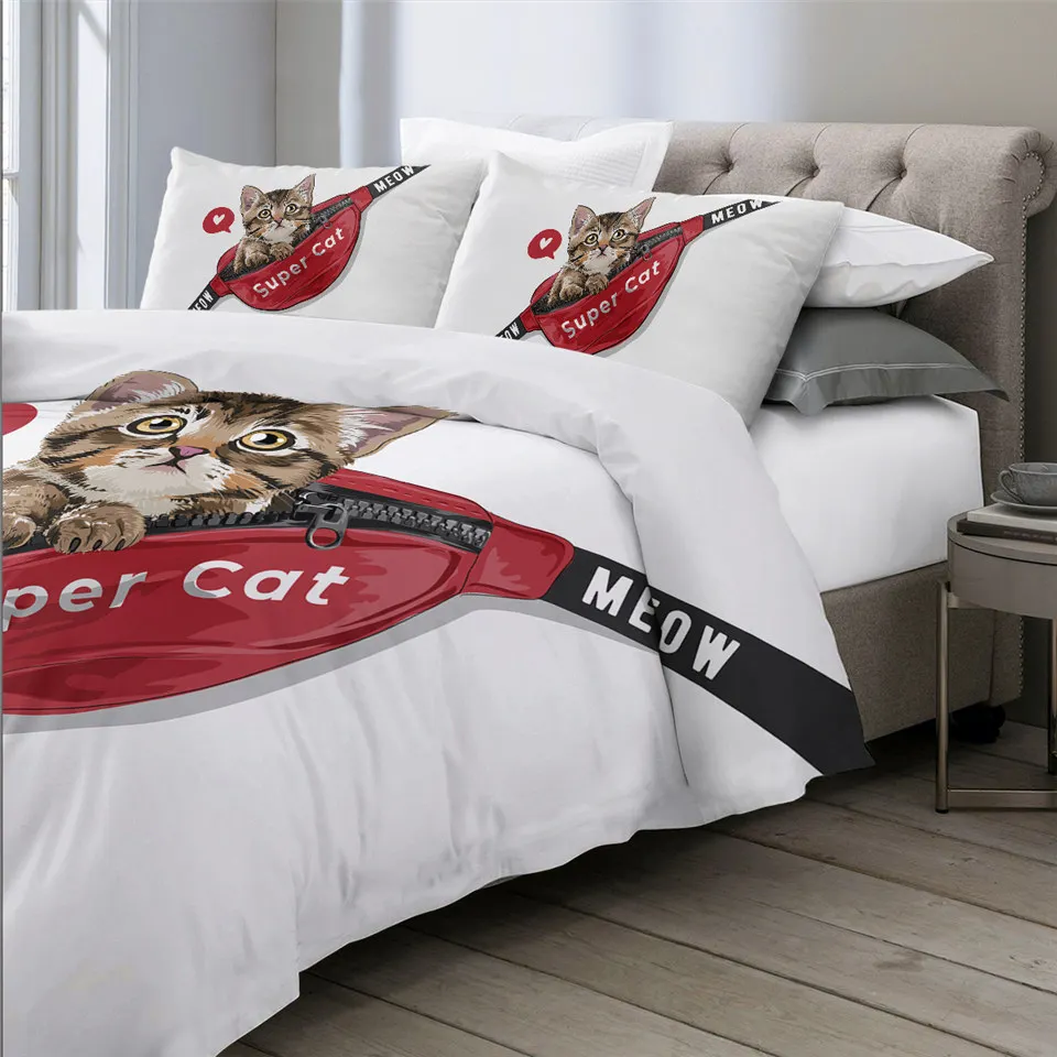Комплект постельного белья с котом, шейный платок, пододеяльник King, черный, серый, украшение для дома, постельное белье с животными, Современный Пододеяльник