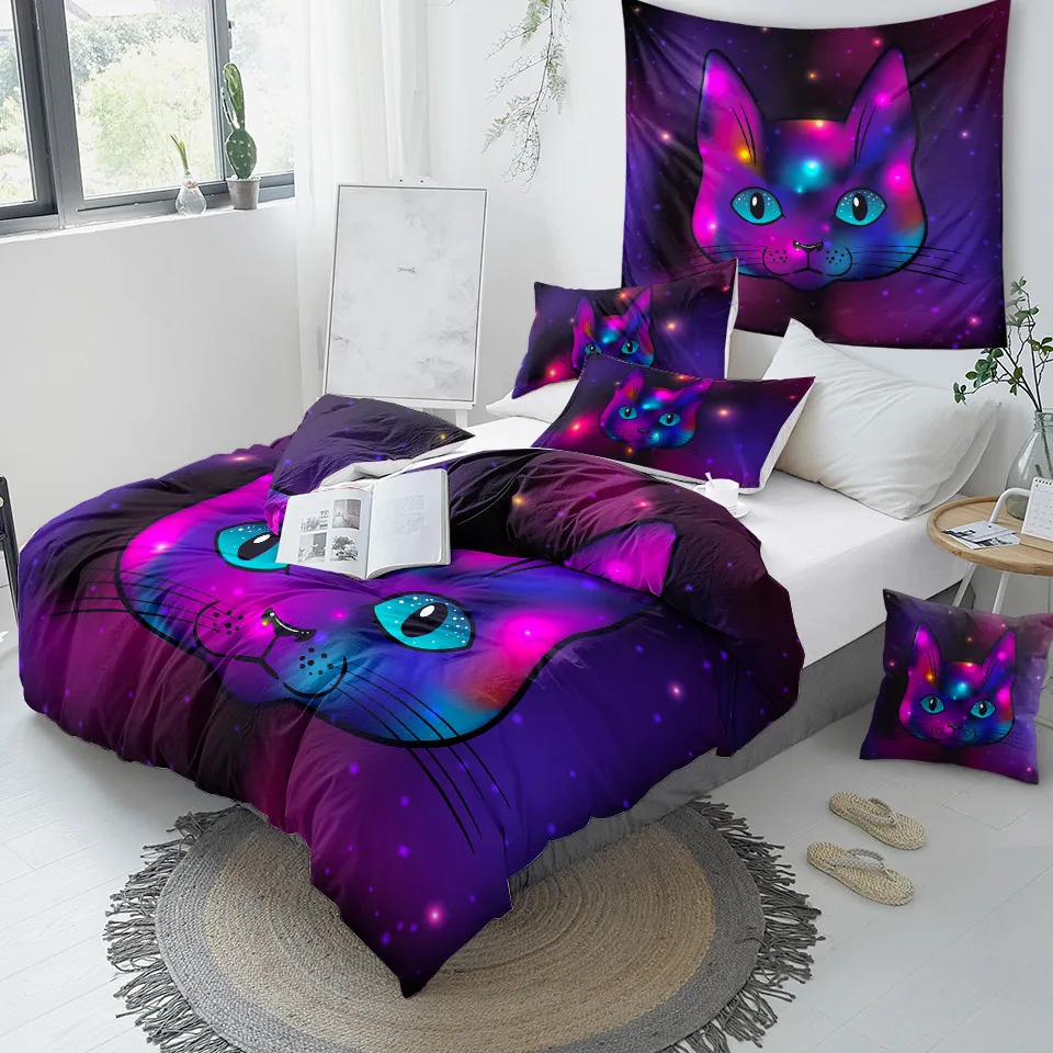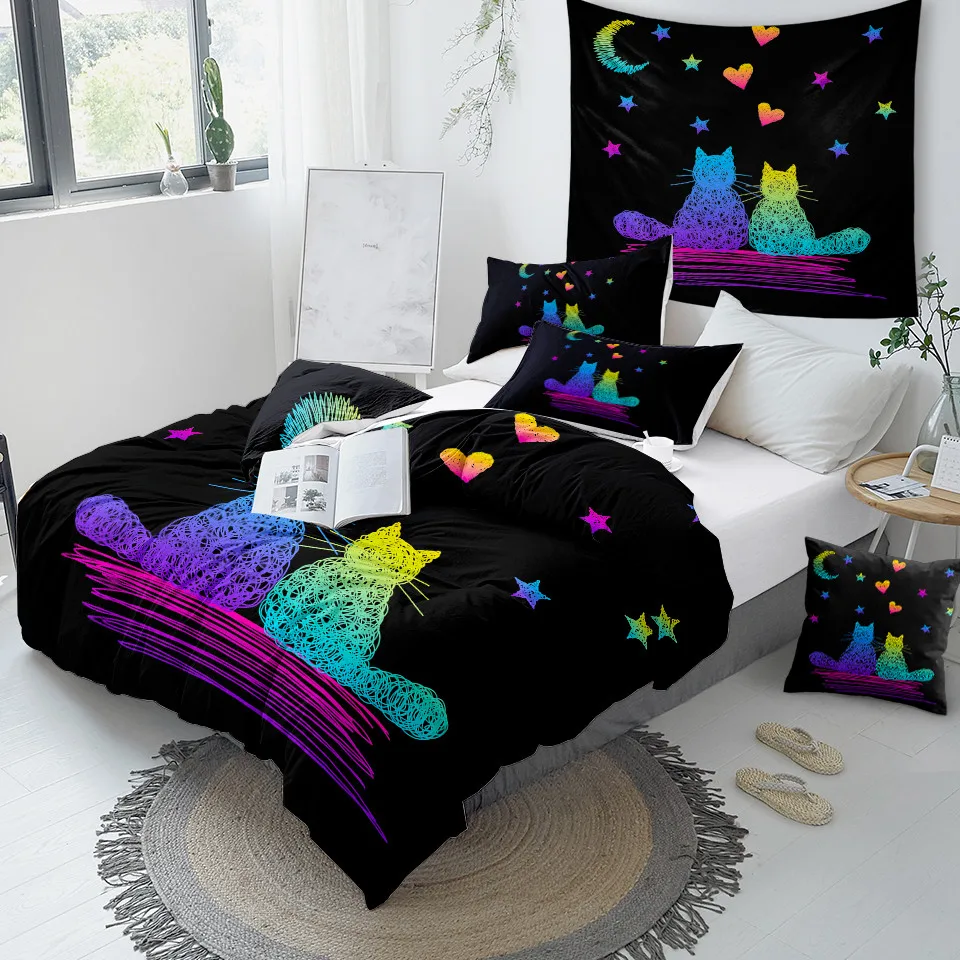 Комплект постельного белья с черной кошкой, волшебное одеяло с Луно...