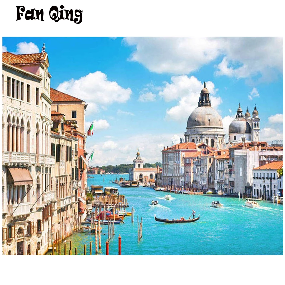 5D алмазная живопись венецианскими водными пейзажами, Алмазная мозаика, вышивка крестиком, квадратныекруглые стразы, домашний декор, картина