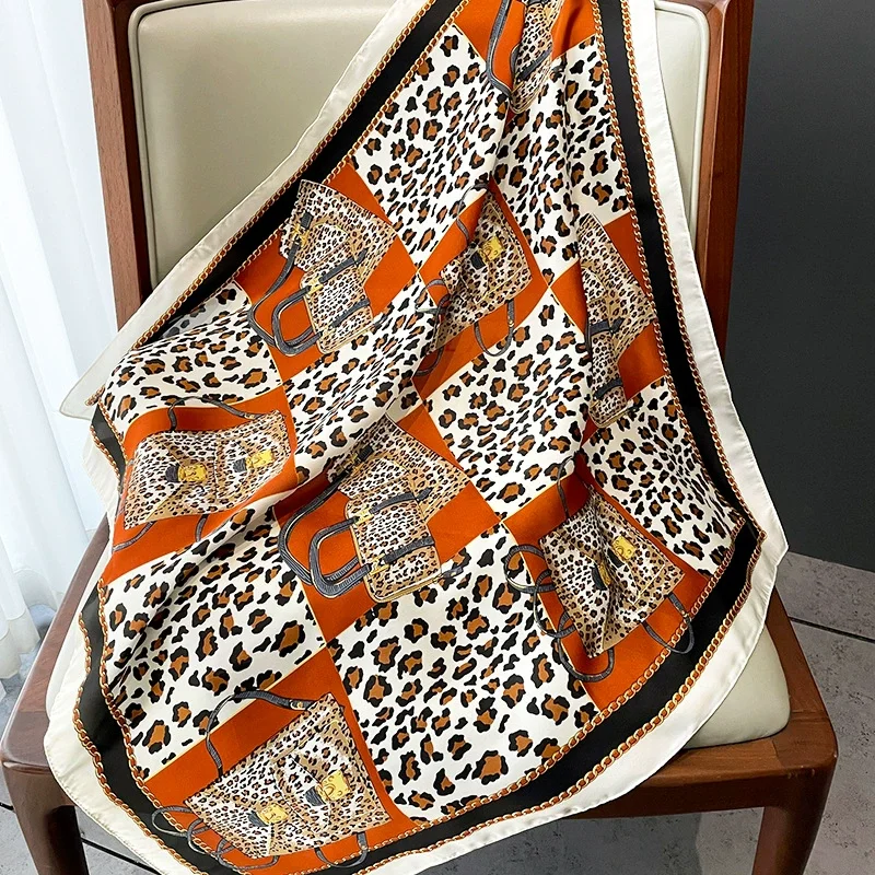 Квадратный шелковый шарф с принтом, женская модная атласная бандана...