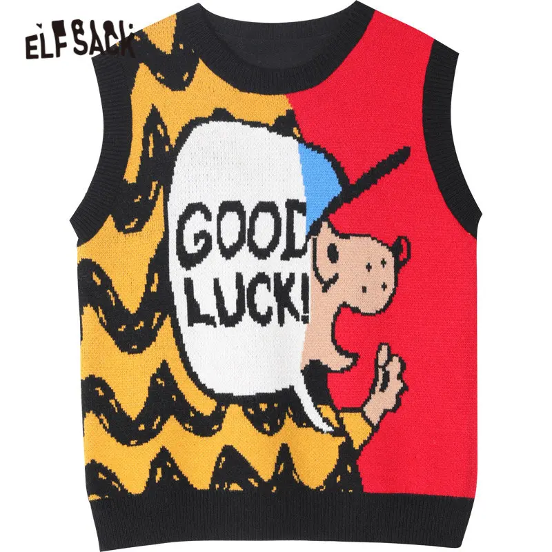 Женский трикотажный пуловер ELFSACK, оранжевый пуловер с графическим принтом, свитер без рукавов, повседневные топы на каждый день, весна 2020