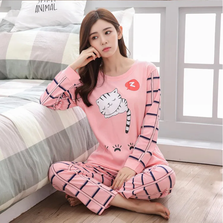 Новинка 2020, женская пижама, хлопковый комплект с длинным топом, женские пижамные комплекты, Ночной костюм, комплекты одежды для сна для мам, Женская Весенняя домашняя одежда