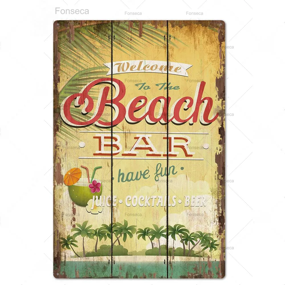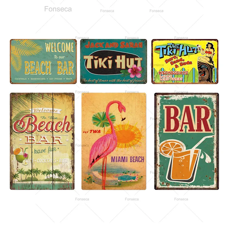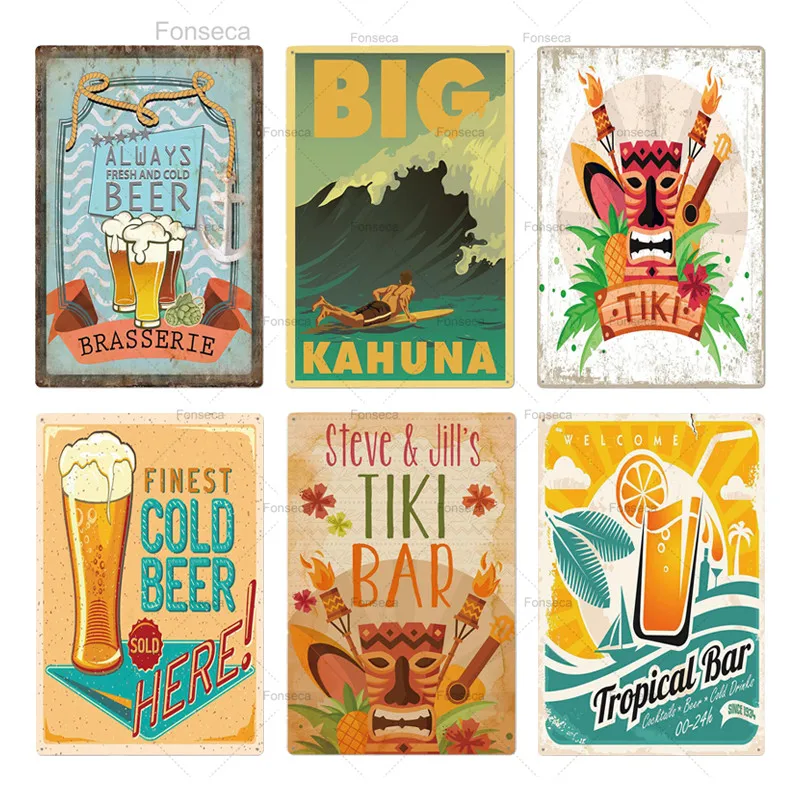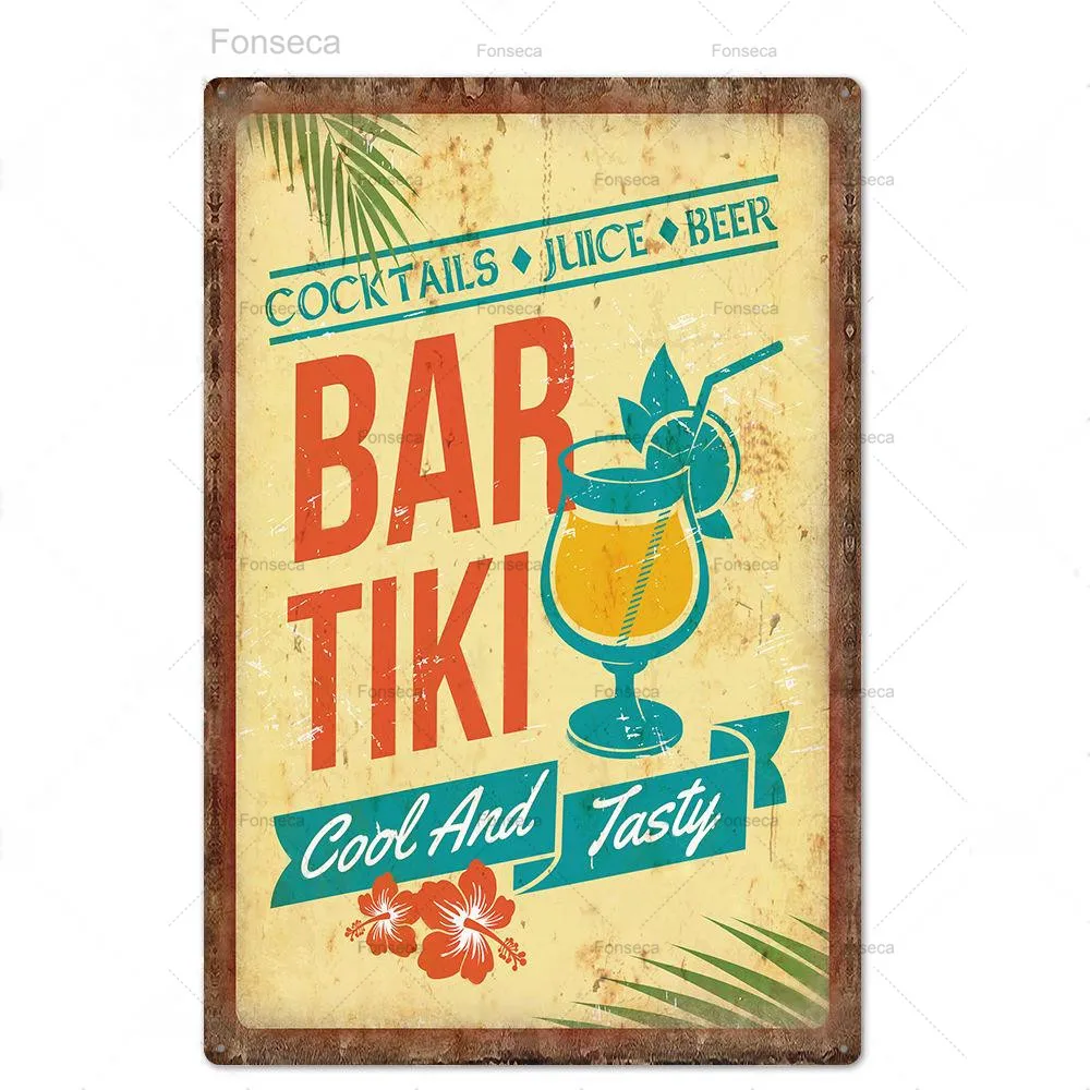 Tiki Bar Настенный декор, металлический знак, железная картина, пляжный бар, лето
