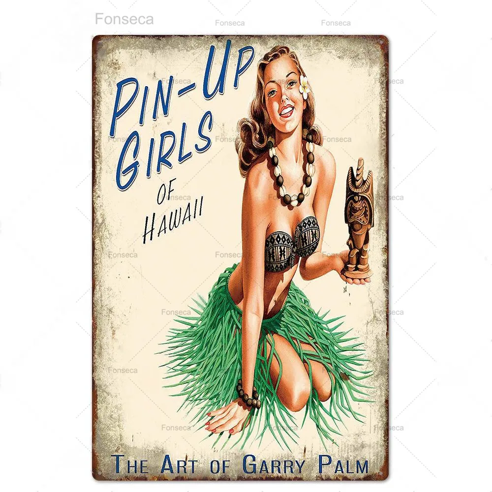 Жестяной знак открытие сезона летучей пин-ап сексуальная девушка ры...