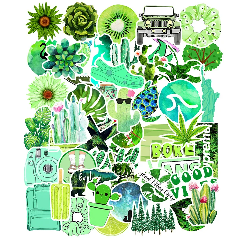 50 шт.упак.; Классического фасона; Стиль зеленый маленькие свежие граффити наклейки для Moto машинок с дистанционным управлением чемодан крутые стикеры скейтборд стикер