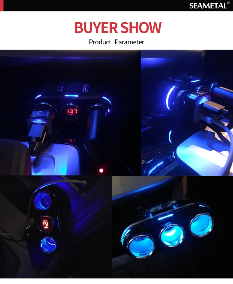 Автомобильное зарядное устройство для прикуривателя, 12 В, USB-светодиодный для зарядки со светодиодной подсветкой
