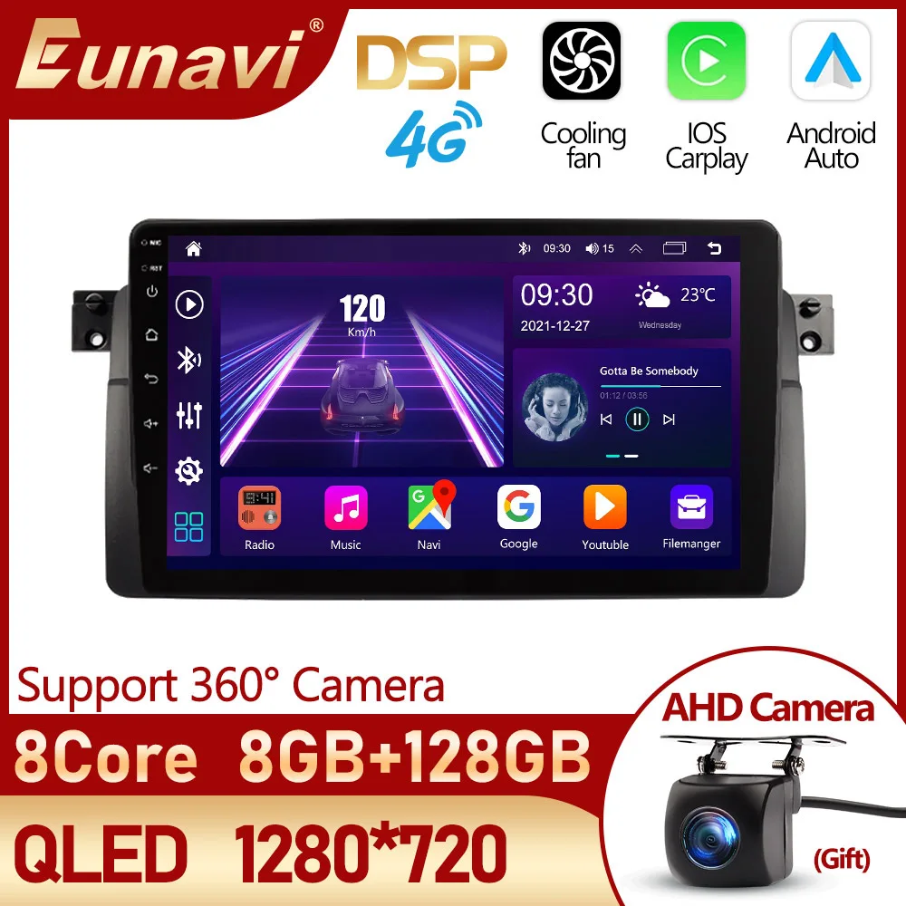 Eunavi Android Авто Carplay Мультимедиа Видео плеер для BMW E46 M3 318i 320i 325i автомобильное радио 2 Din головное устройство GPS QLED экран 4G