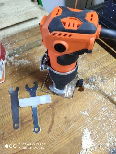 Заказывал фрезы, пришли на месяц раньше самой машинки. Почта России, безжалостна... тем не менее фреза работает. На первый взгляд аппарат не плохой, думаю сработаемся. Продавец, бонусом видать, аж 5 штук переходников насыпал.