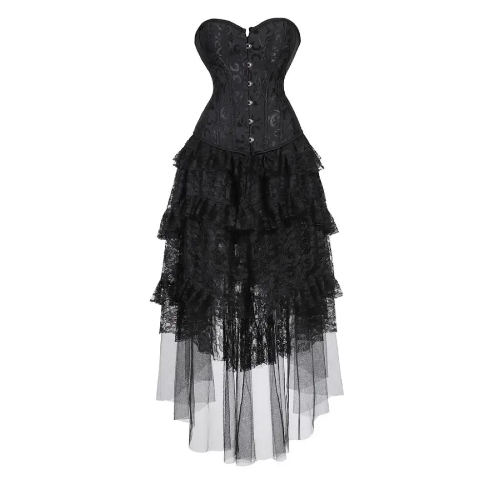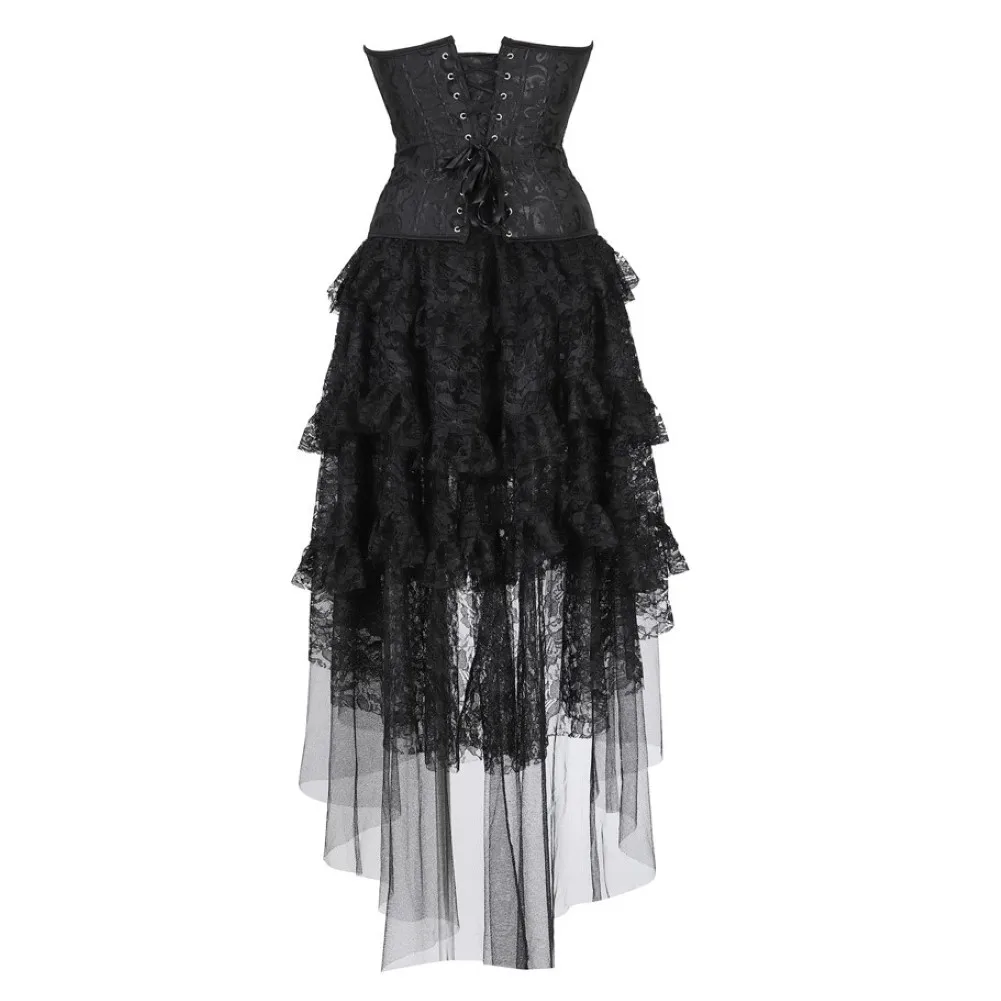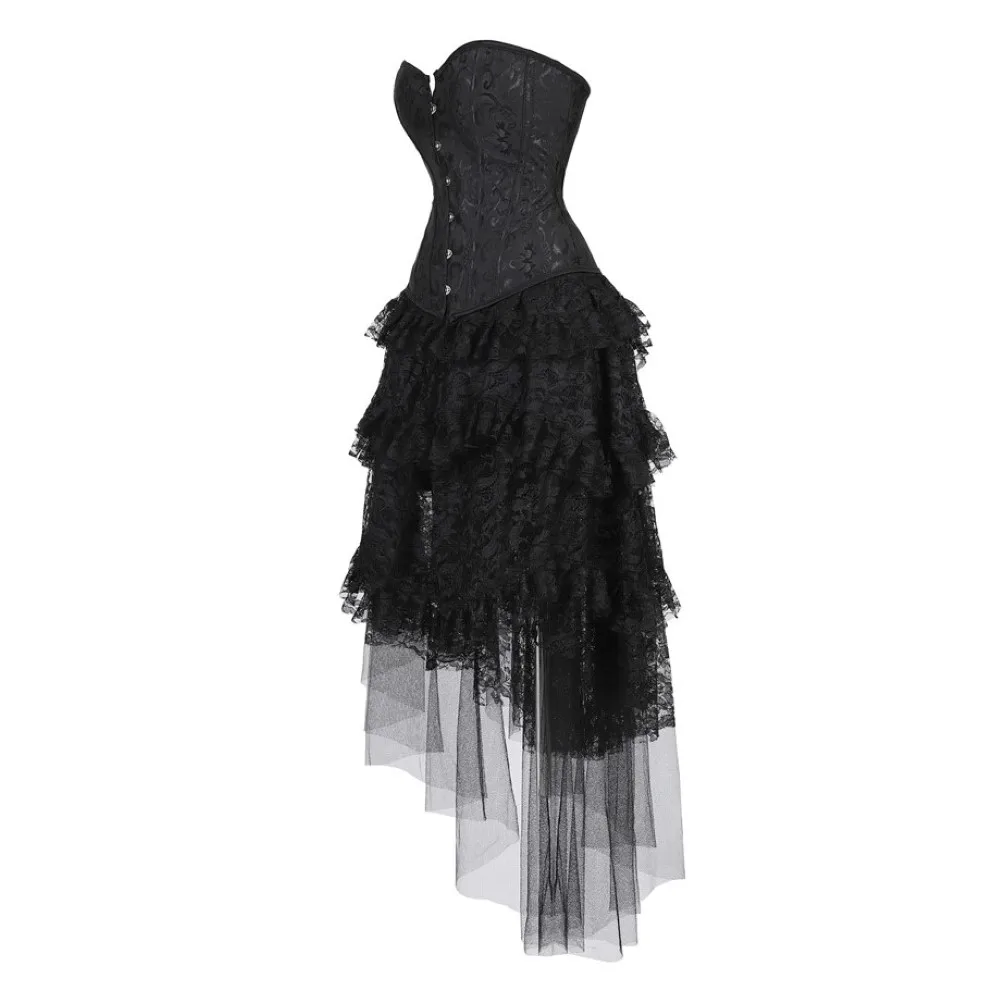 Женский Готический корсет, платье в викторианском стиле ретро, бюстье, топ с асимметричной кружевной длинной юбкой с оборками, набор аксессуаров