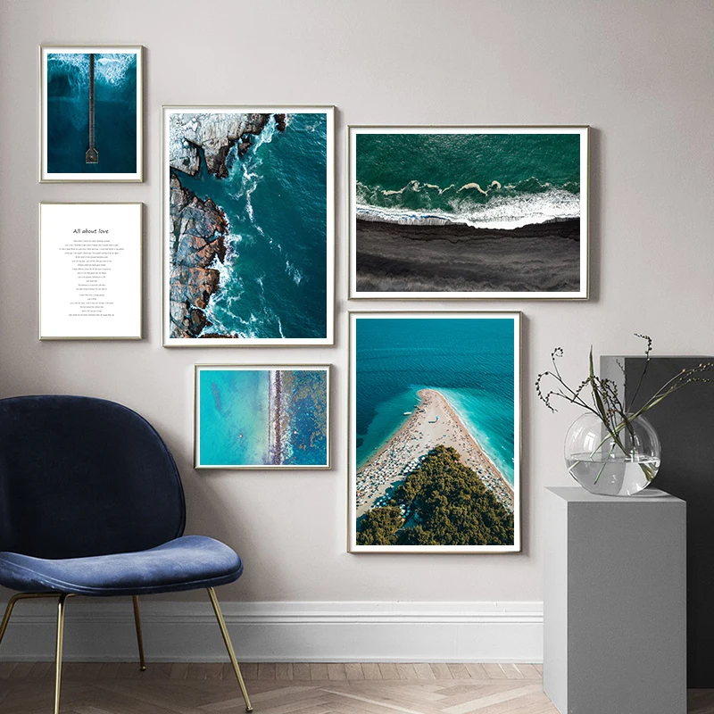 Абстрактные синие креативные картины на холсте морской пейзаж посте...