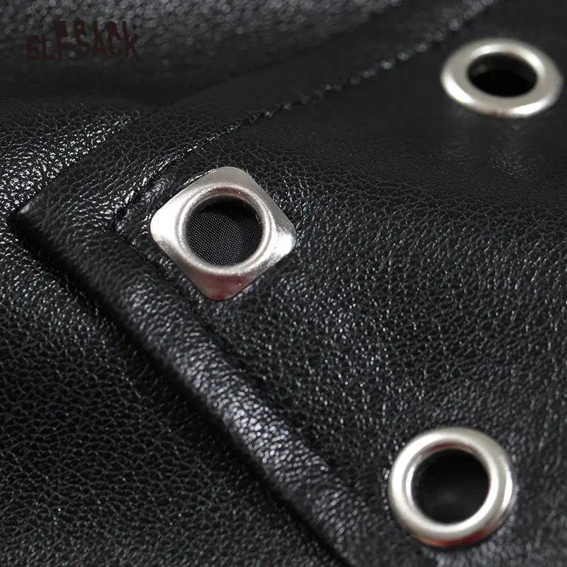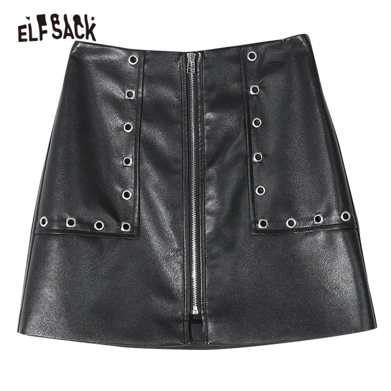 Женская кожаная юбка ELFSACK, черная однотонная трапециевидная Повседневная мини-юбка с высокой талией и заклепками в стиле панк, весна 2020